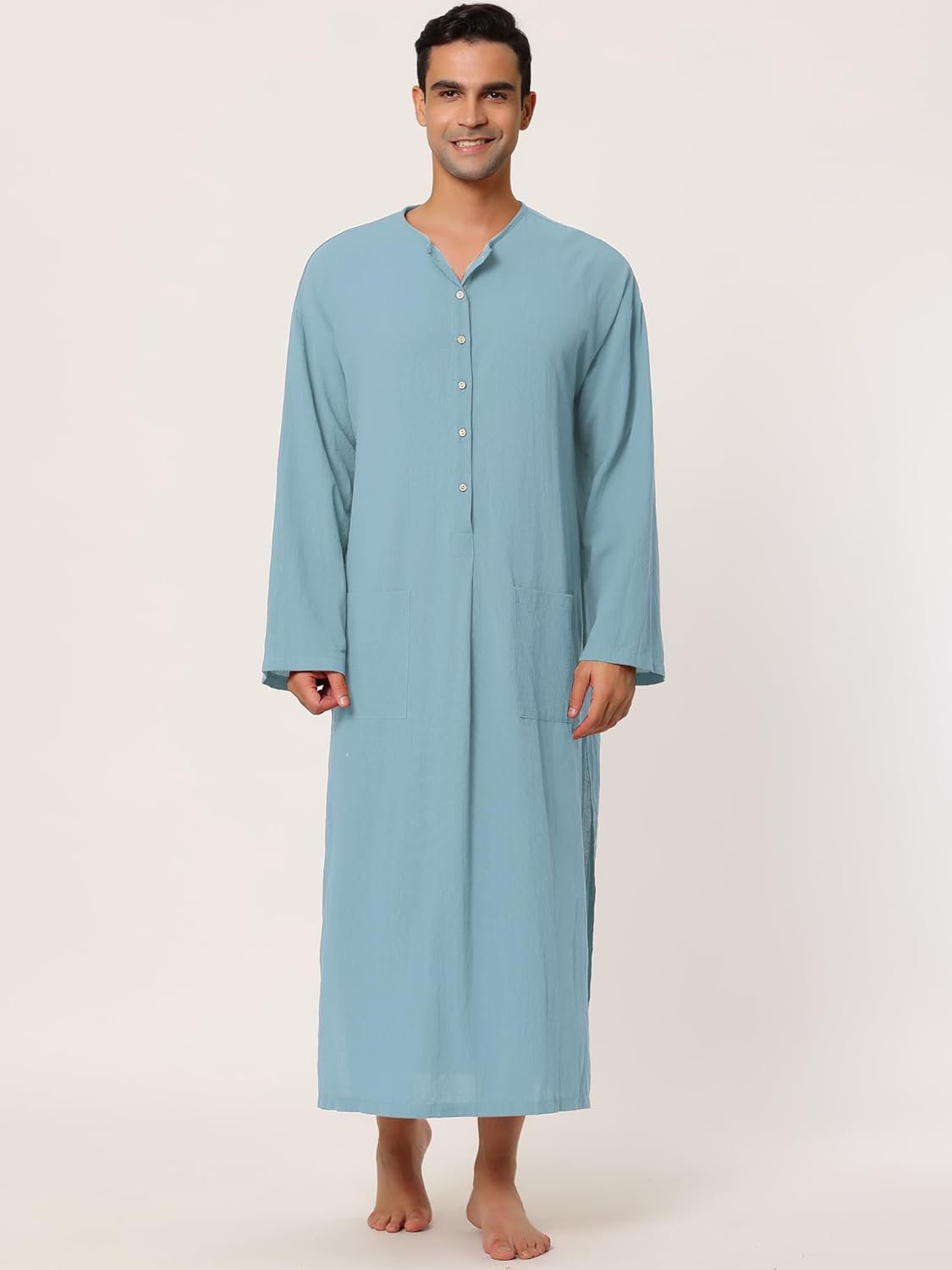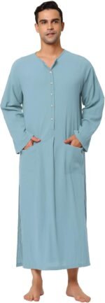 Lars Amadeus Men’s Nightshirt Cotton Sleep Shirt Side Split Long Gown with Pockets