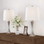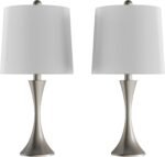 STYLISH DESIGN – The body of each bedside lamp features a flared trumpet-shaped base with a brushed silver finish. Use this matching set of small table lamps to create a fashionable mid-century look in your living room, bedroom, entryway, or office.