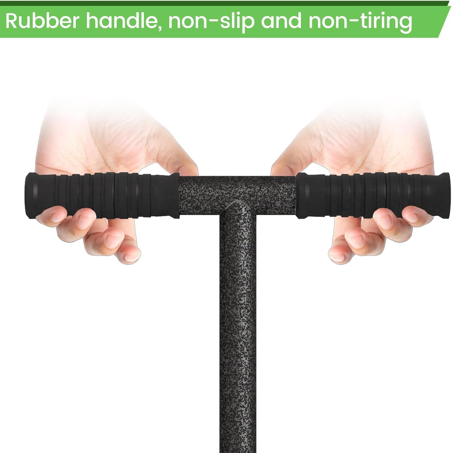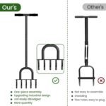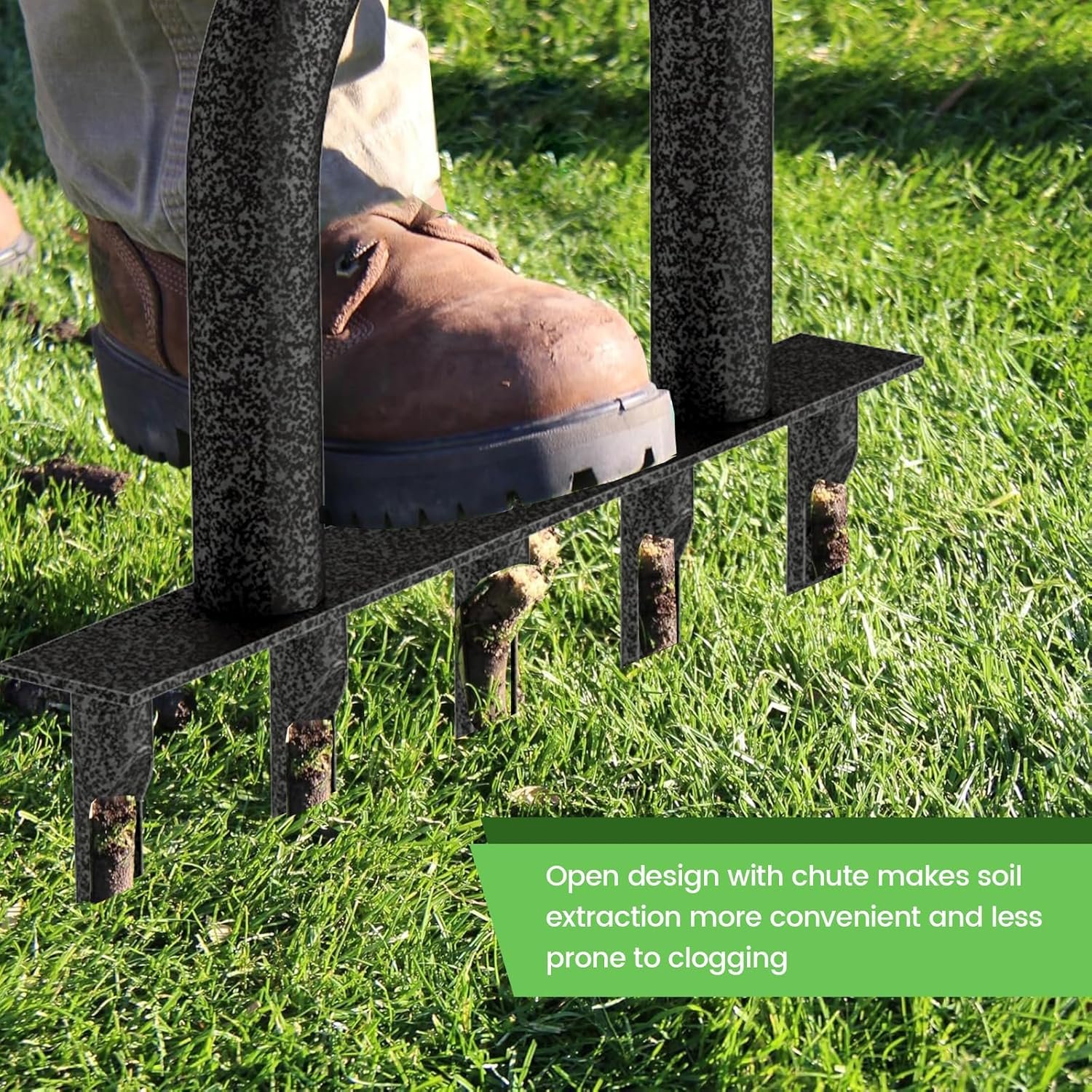 【Ergonomic Comfort Design】Lawn aerator tool with soft rubber grips reduce hand fatigue and blisters, while an added footbar ensures clean plug soil without dirty your shoes, enhancing user comfort during extended use.