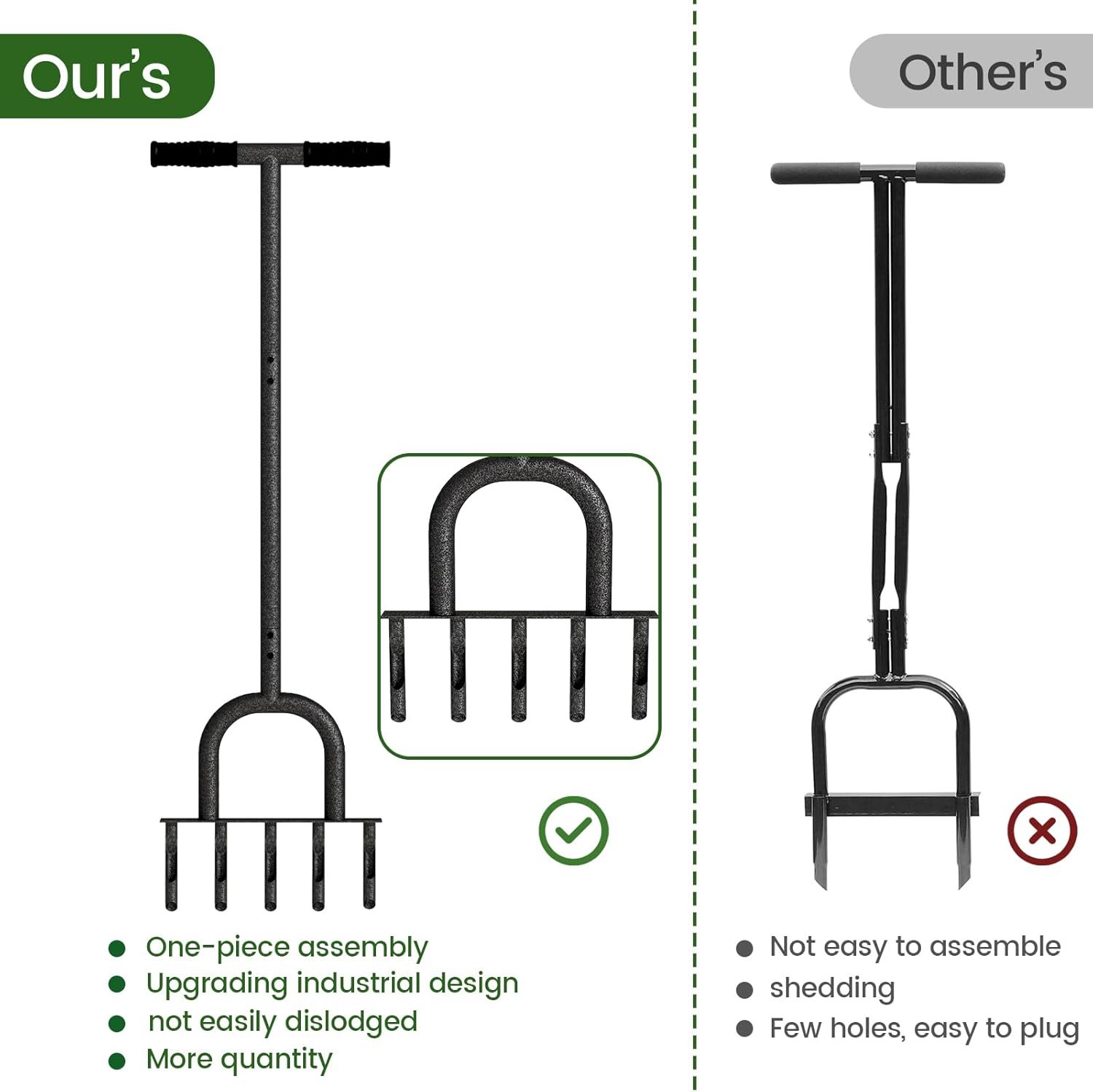 【Turf Health Optimization】Our aerator tool for lawns can reach deep into compacted soil to displace deep layers of soil, promoting the flow of air, water and nutrients to grass roots, promoting stronger plant growth, resulting in a green lawn instead of bare ground.