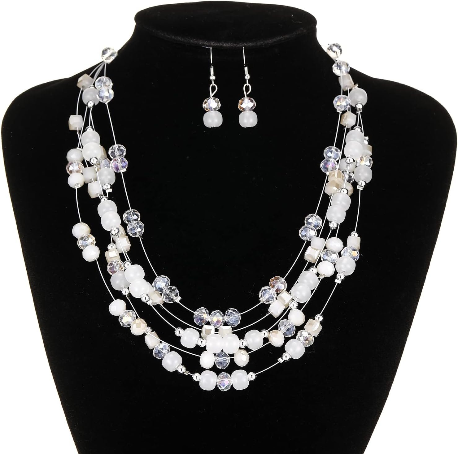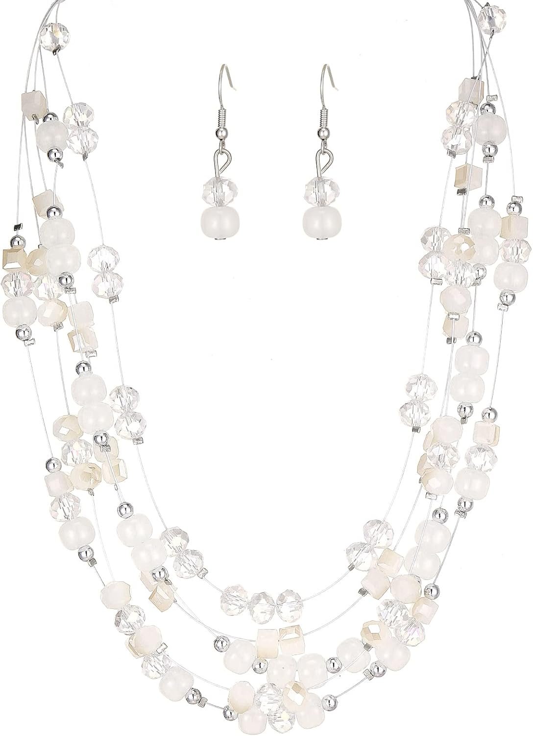 Layered Chunky Statement Necklace for Women Colorful Boho Beaded Necklaces and Earring Set Fashion Costume Jewelry for Women