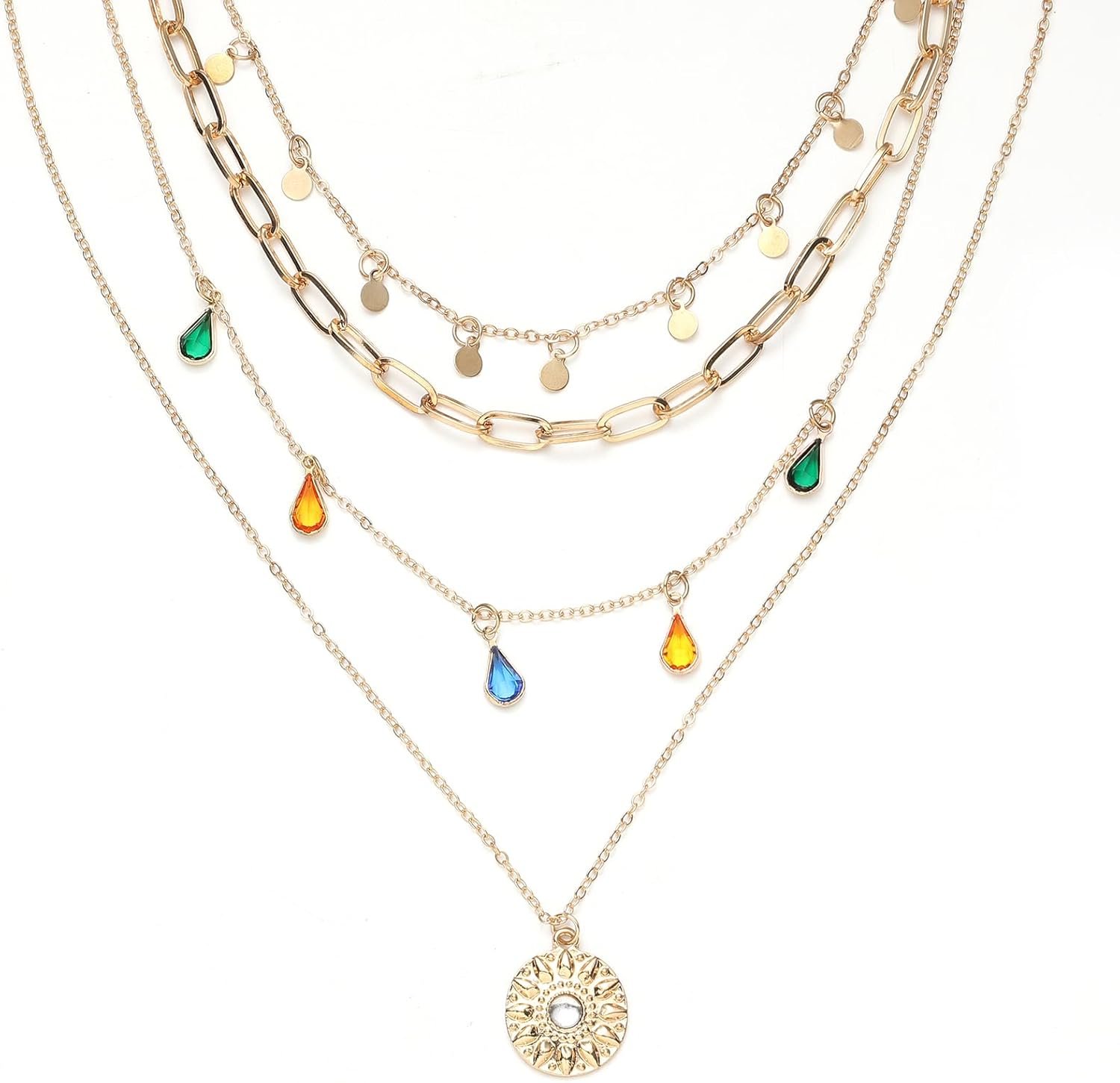 Layered Round Pendant Necklace Gold Plated Dainty Multilayer Choker Layering for Women Necklaces Stylish Minimalist Pendants Simple Chain Stacked Necklace Jewelry Gifts