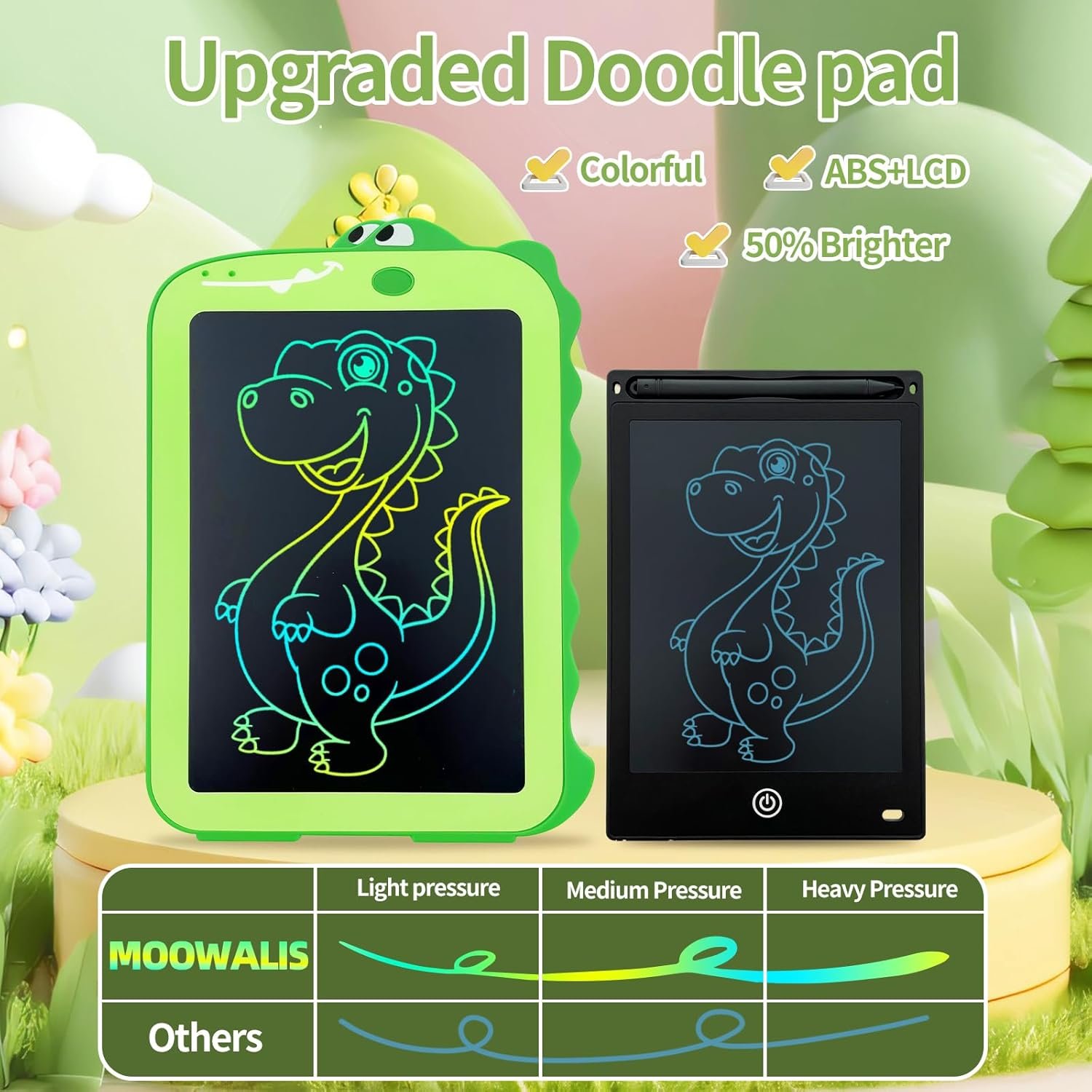 Perfect Travel Toy for Kids: Lightweight and portable, this drawing pad is ideal for holiday travel. Kids can draw, write, and take notes without any mess, and its long-lasting battery ensures hours of creative fun wherever they go. Ideal for kids ages 3-8!