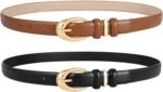 2 Pack Women Leather Belts for Jeans Dresses with Gold Silver Buckle Women Leather Belts for Jeans PantsWomen Leather Belts for Jeans Pants