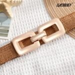 Boho Woven Straw Waist Belt for Women with Gold Buckle