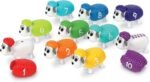 Counting sheep isn’t just for falling asleep anymore! Discover a wooly and wonderful way to learn new number and color skills with the Snap-n-Learn Counting Sheep from Learning Resources. These educational toys include 10 friendly two-piece number sheep who are numbered 1–10 and ready for early math lessons in number recognition, counting, sequencing, and more. Each sheep also features a different color of the rainbow—instead of the usual white or black, these sheep have wool that’s red, blue, orange, green, and more! Sized just right for little hands, the number sheep’s removable snap-on, snap-off wool doubles as a fine motor skills toy, and builds coordination and other essential skills. It also hides a surprise—each sheep also comes numbered with dots beneath their wool, which reinforce number recognition and add barnyard fun to matching games for 2-year-olds. Best of all, the Snap-n-Learn Counting Sheep come with a reusable plastic storage tub that makes cleanup a snap.