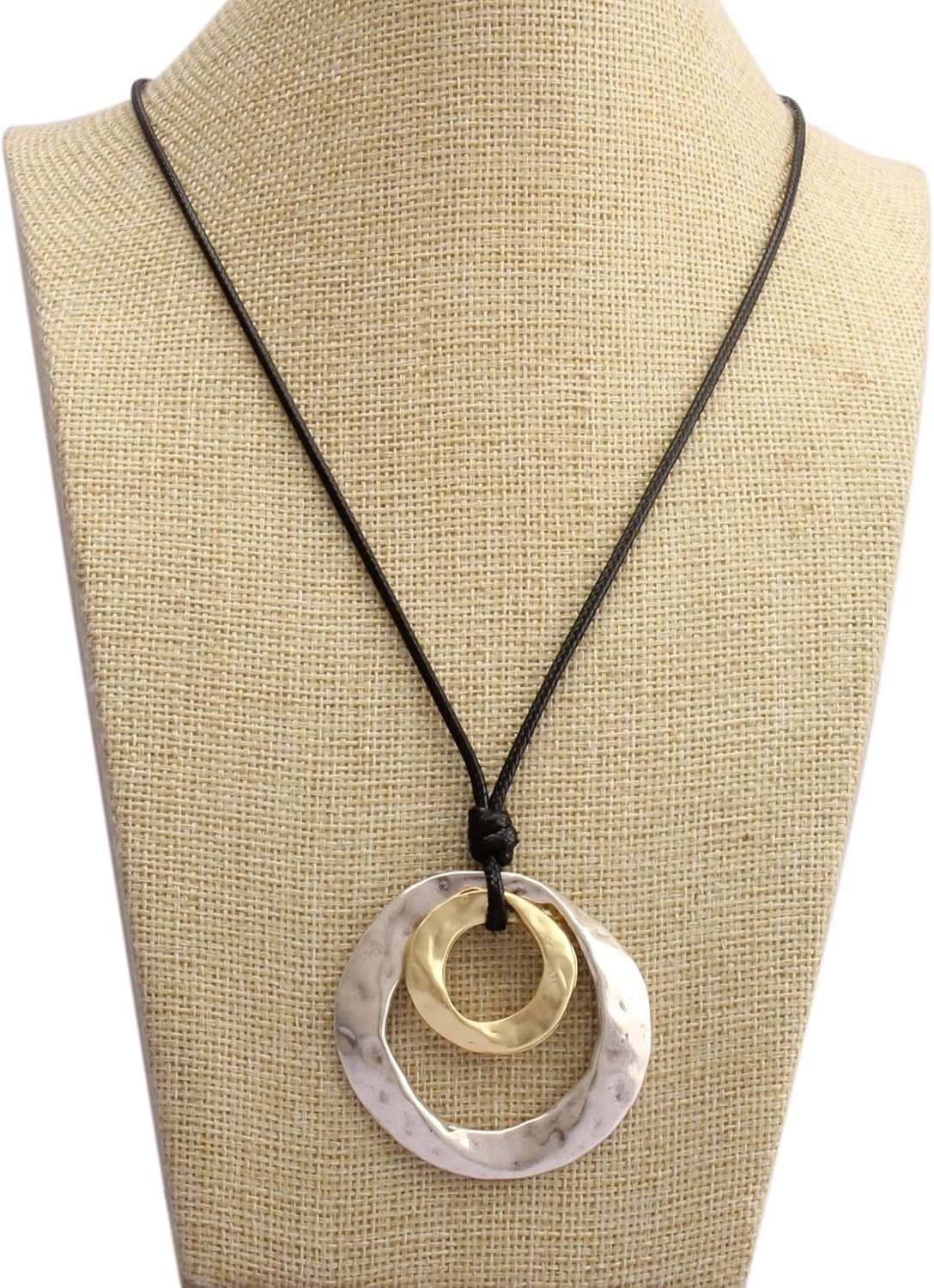 Leather Necklace for Women Long Boho Pendant Hippie Choker Necklace Bohemian Layered Leather Rope Wooden Jewelry Gifts