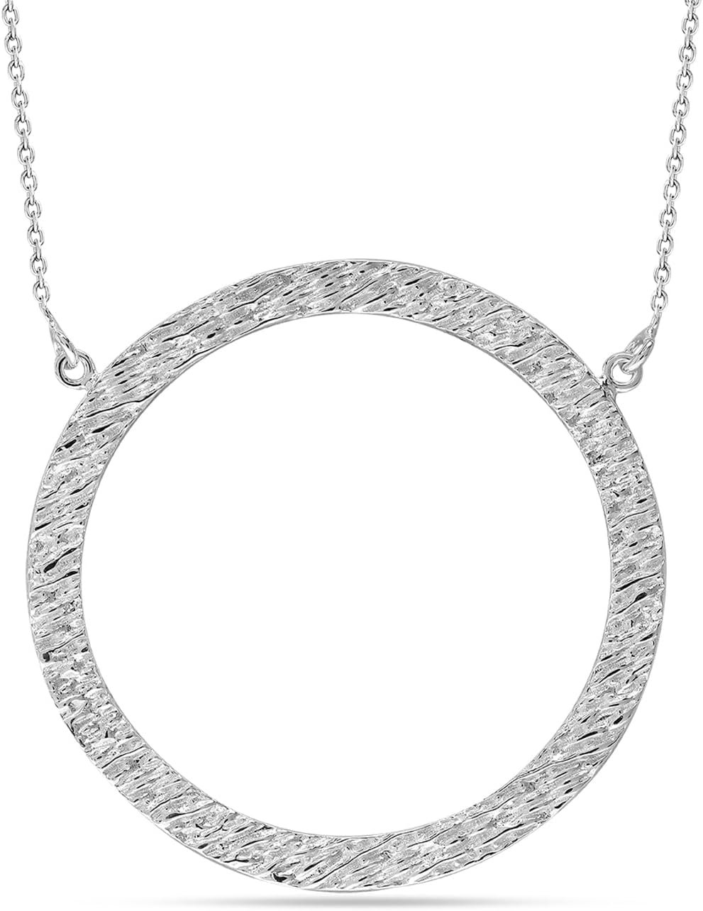 LeCalla 925 Sterling Silver Hammered Necklace for Women | Italian Handmade Hammered Texture Pendant Necklaces | Women’s Adjustable Chain Necklace Pendant Jewelry Gift for Her
