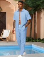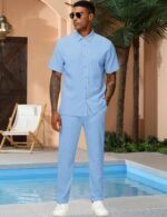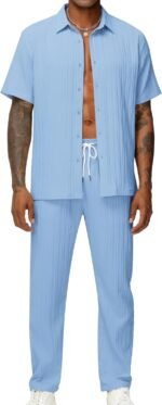 Be the first to review “LecGee Men’s 2 Piece Vertical Striped Textured Outfits Summer Casual Button Down Shirts And Pants Matching Sets” Cancel reply