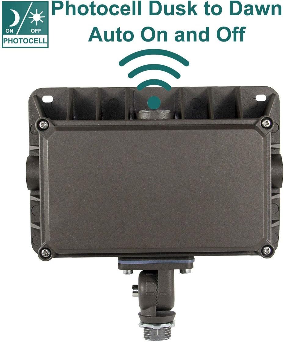 [Photocell Auto On/Off] Dusk-to-dawn photocell automatically turns the exterior flood light ON when dark outside and OFF when the sun rises. This function saves you energy and the trouble of controlling the light manually.