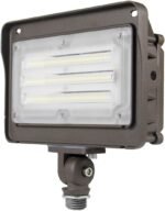 Customers find the flood light effective for flagpole illumination and appreciate its functionality, particularly the dusk-to-dawn sensor that works without fail. The light is well-made with heavy materials, easy to install, and offers good value for money, with one customer noting it’s easy on the electric bill. The size is small, and while some customers confirm it’s waterproof, others report issues with water getting into the lamp. The built-in photocell feature receives mixed feedback.