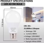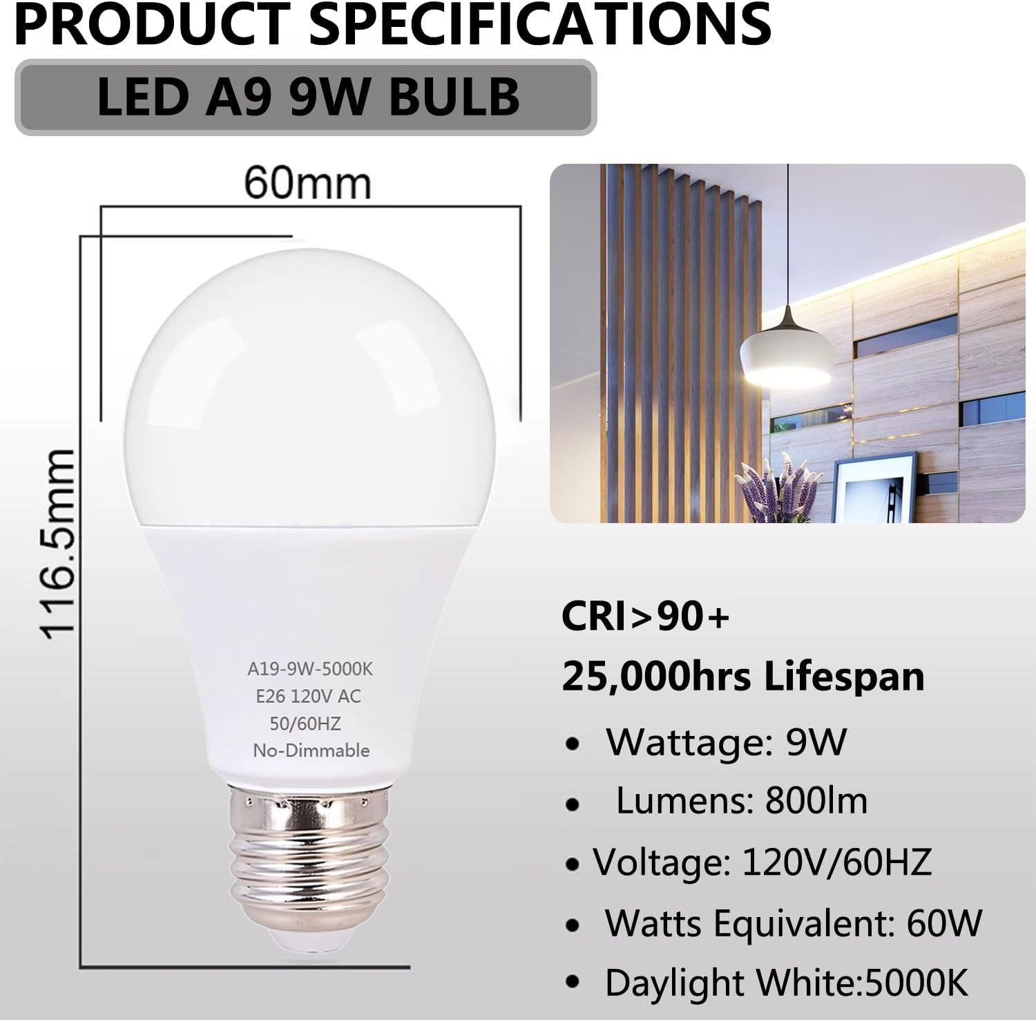 Bright White 5000K : Provides 800 Lumens of light immediately to full brightness, Bright White 5000K color temperature makes your surroundings more clean.Bright 9W A19 LED Bulbs for Home Bedroom Kitchen Living Room Office Lamp
