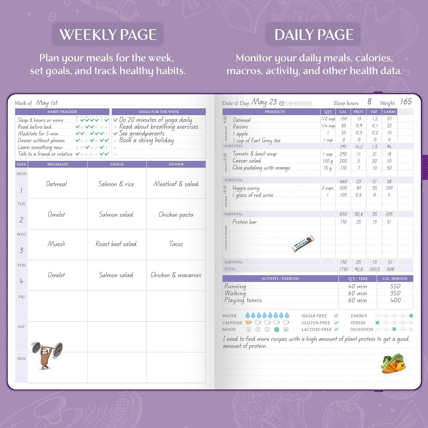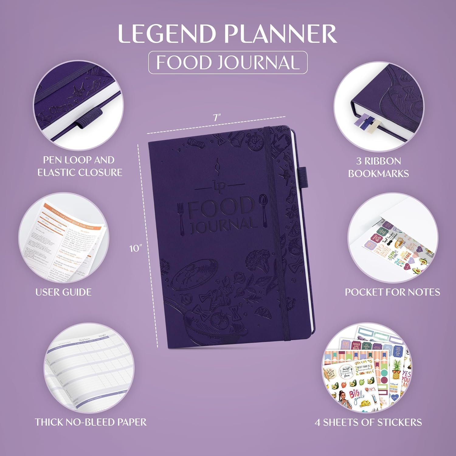 Legend Food Journal – 6-Month Wellness Diary for Tracking Meals, Calories, Macros & Exercise – Weightloss Planner & Diet Tracker – Daily Log for Weight Loss & Nutrition – 7″ x 10″ (Purple)