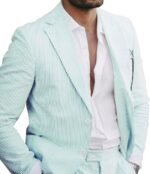 Leisure Mens Striped Seersucker Slim Fit Suit Grooms Lightweight Sear Sucker Suit for Wedding