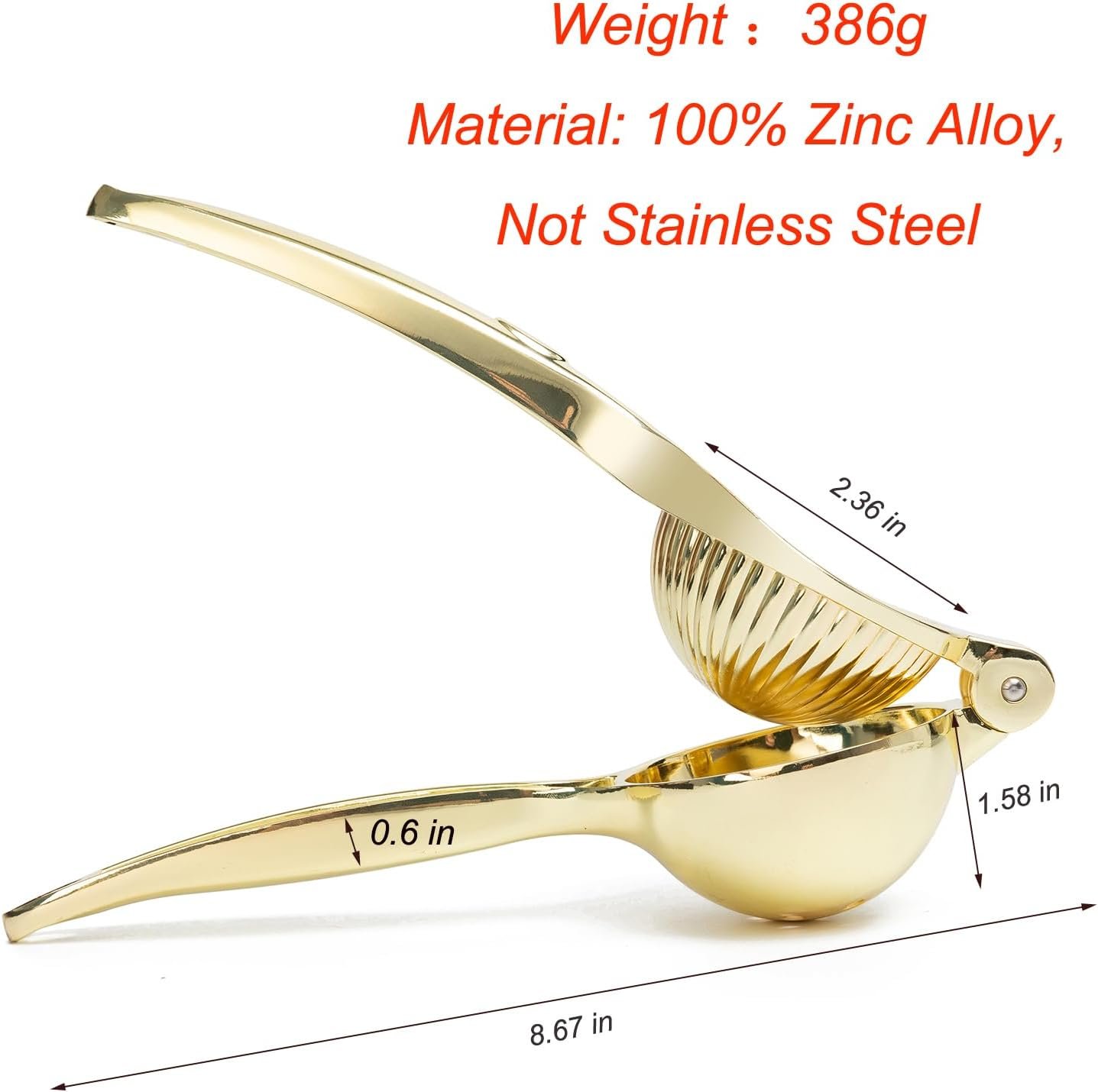 High-Quality Materials : Lemon juicer squeezer is made of food-grade Zinc. Compared to stainless steel, zinc alloy is thicker, more wear-resistant, and less prone to deformation and fracture.