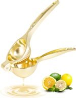 Customers appreciate the lemon squeezer’s bright gold color and heavy-duty construction. They find it easy to use and like its nice weight, with one customer noting that the harder they squeeze, the more juice is extracted.
