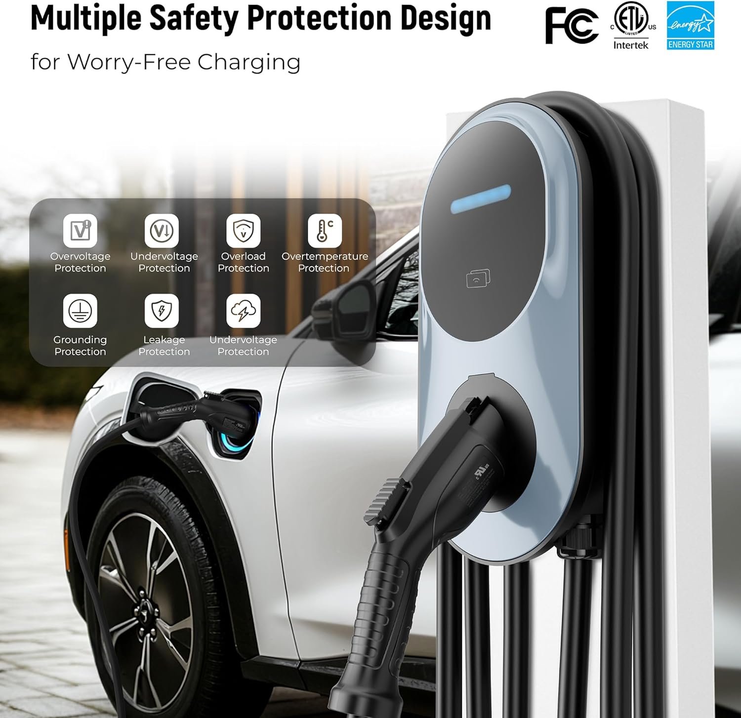 Safe and Reliable: This electric car charger has an IP65 waterproof and fireproof rating, and also has multiple protection features to withstand various weather conditions; This Level 2 electric car charger is FCC/ETL/ENERGY STAR certified, providing you with a reliable and safe car charging environment