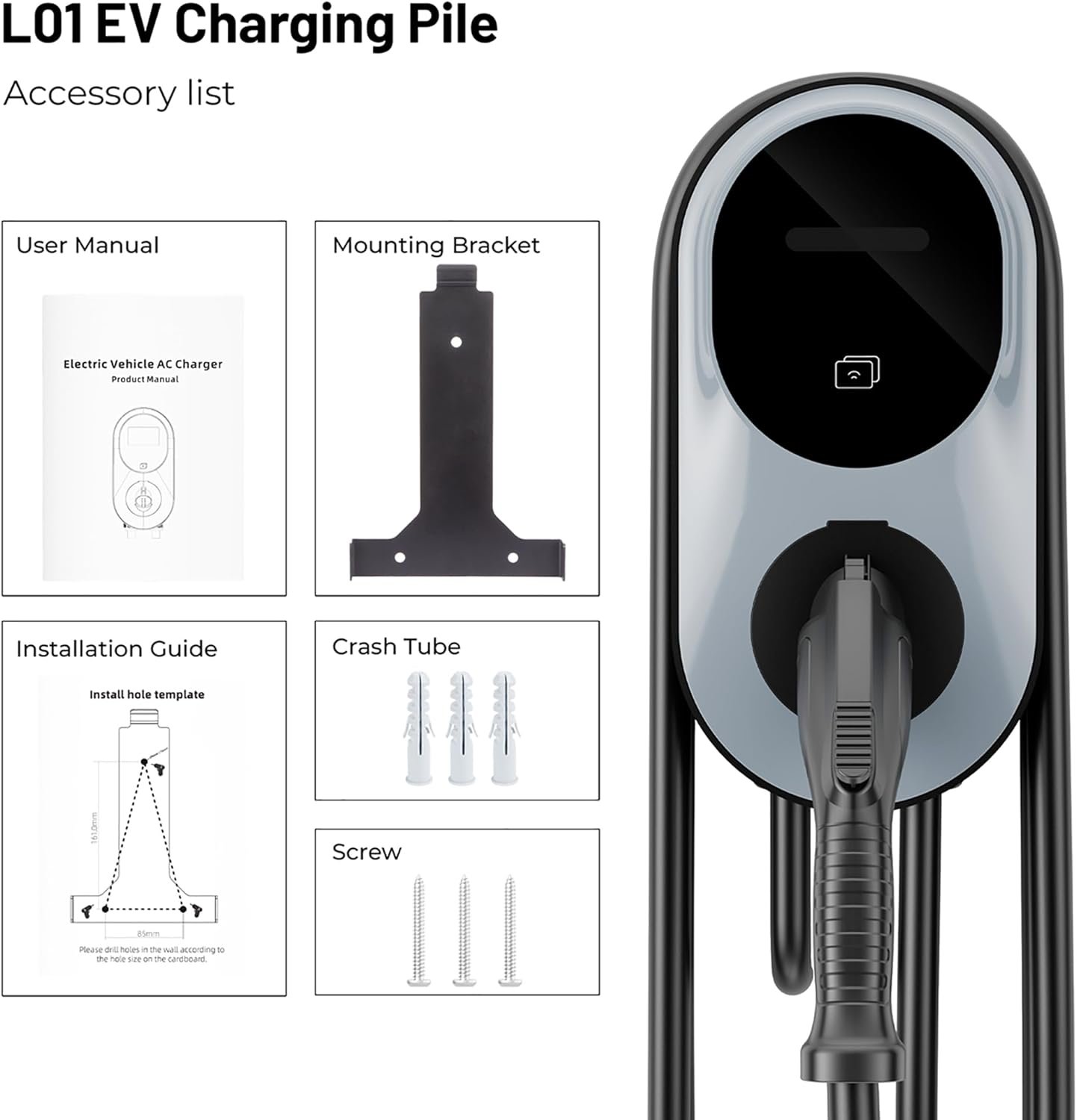 Flexible and Convenient Installation: Customize your installation to your preferences with the EV charger. Whether you choose a column (floor-mounted) unit or a wall-mounted unit, our design ensures a seamless fit into your space. Enjoy an easy installation process that meets your unique needs