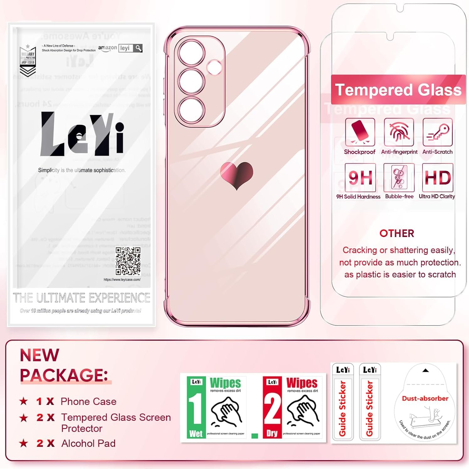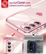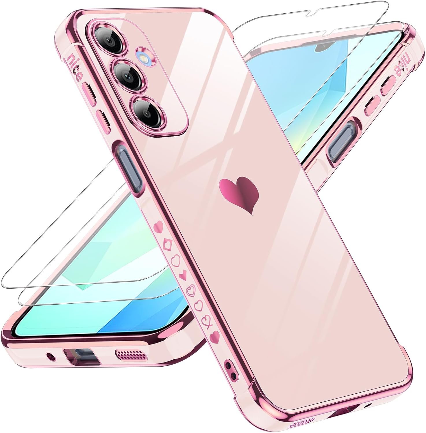 LeYi for Galaxy A16-5G Phone Case: Tempered Glass Screen Protector [2 Pcs]+ Full Camera Lens Protection,Love Heart Plating Luxury Soft TPU Shockproof Phone Case para Samsung A 16 5G,Pink