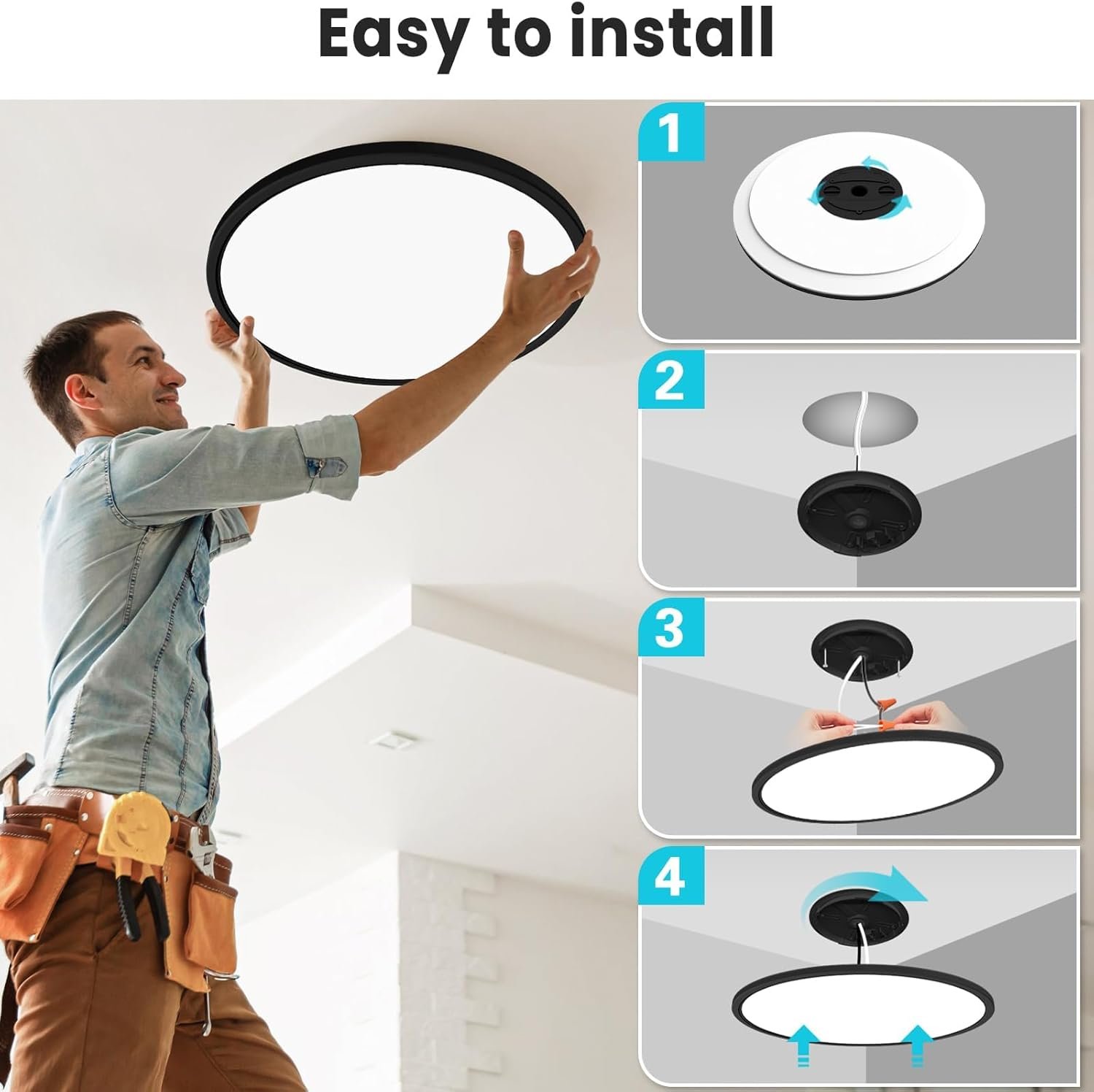 Size: With a slim 16.5inch diameter and a thickness of just 0.94 inches, it’s perfect for a wide range of spaces including livingroom,diningroom,kitchens, bedrooms, and more. Enjoy crisp lighting in a sleek design with libtit
