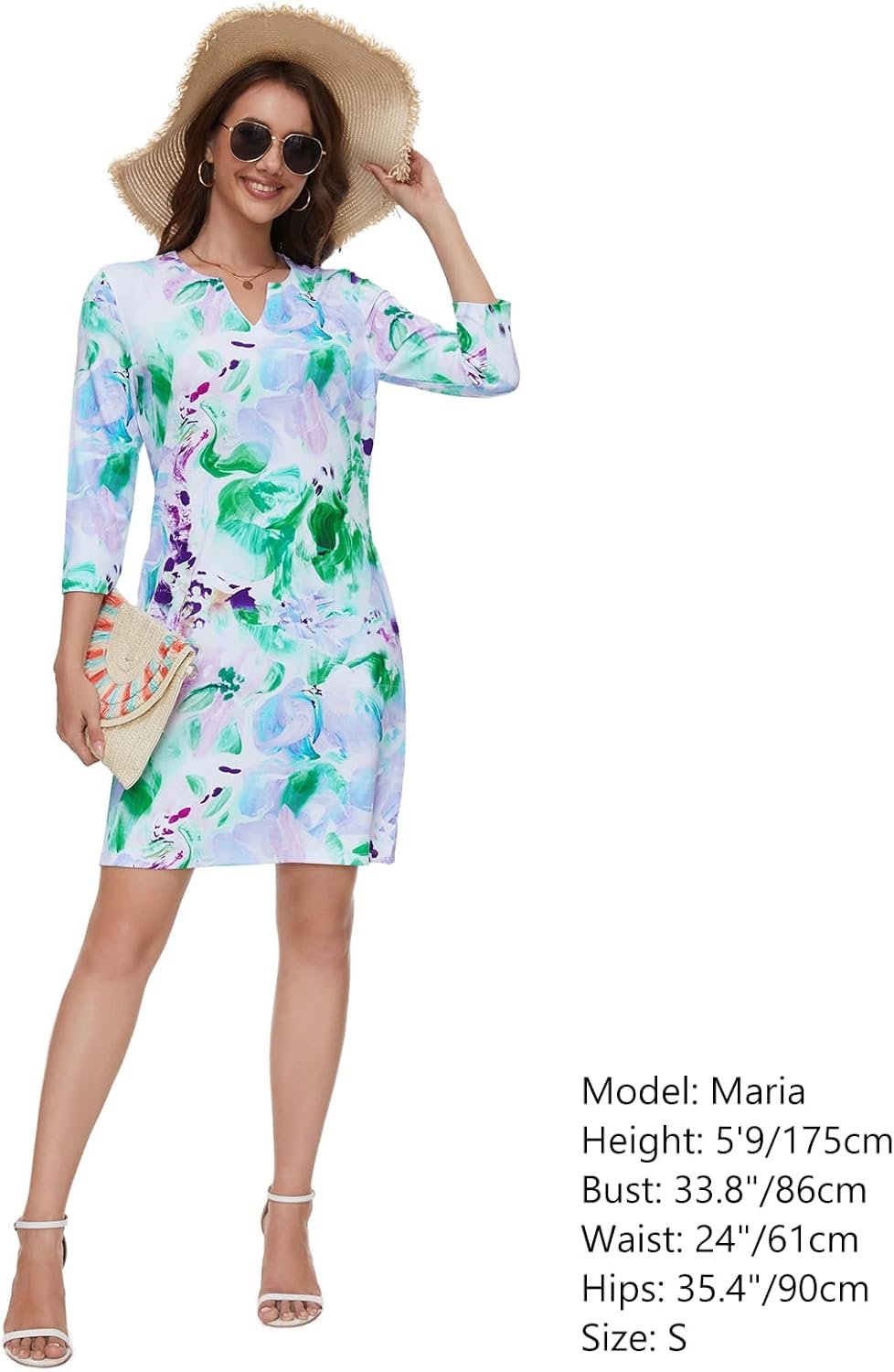 Lightbare Women’s 3/4 Sleeve Dress with Pockets UPF 50+ Casual Sun Dress Breathable Quick Dry for Beach Hiking Outdoors Party