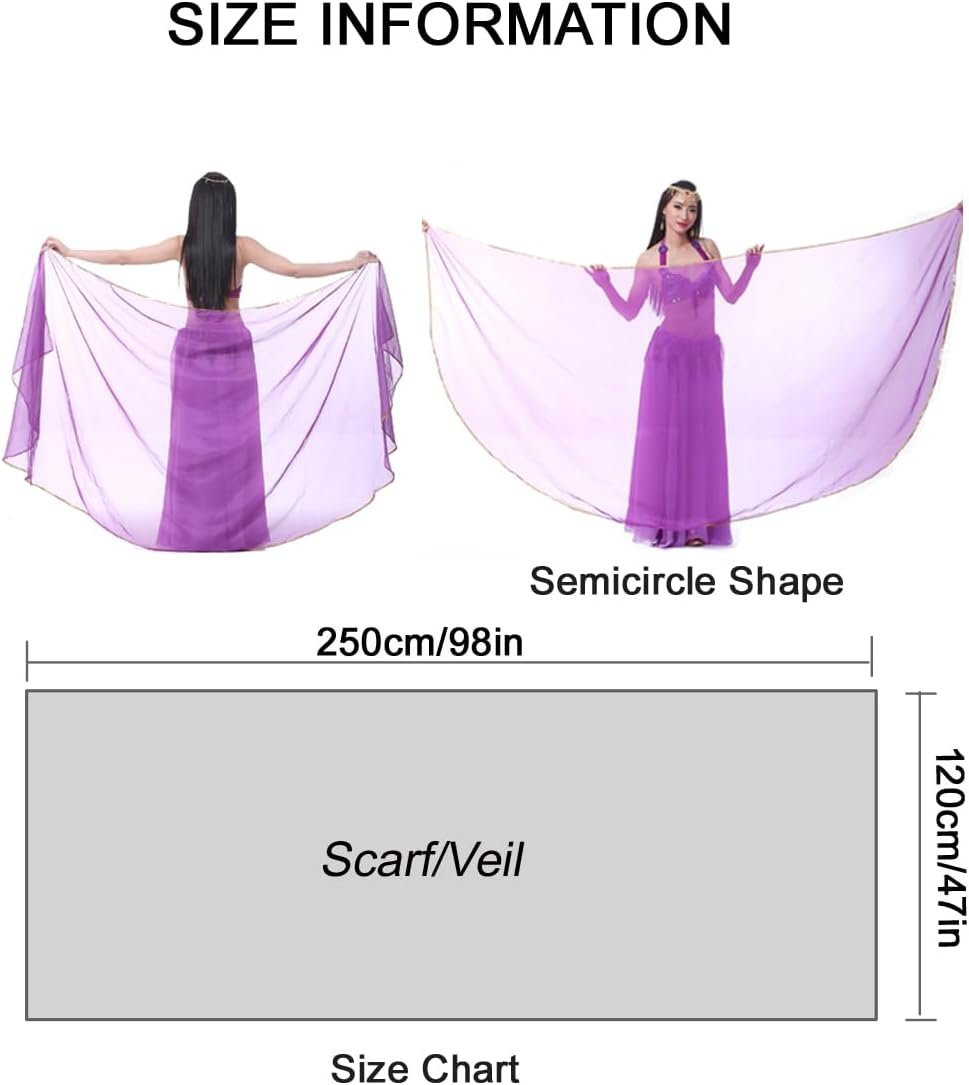 Lightweight Semicircle Chiffon Hand Scarf Belly Dance Costume Outfit Hip Scarf Sequin Trim Shawls Veils