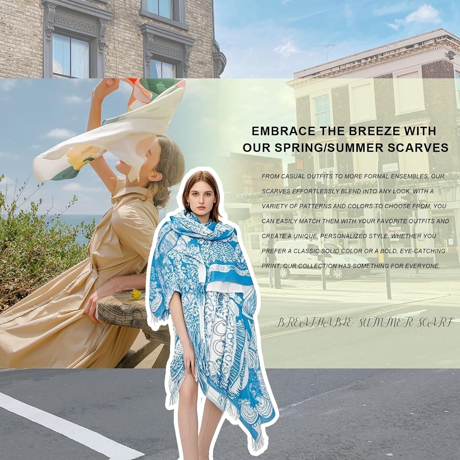 Lightweight Solid Printed Plaid Fashion Scarf for Women for Spring and Summer