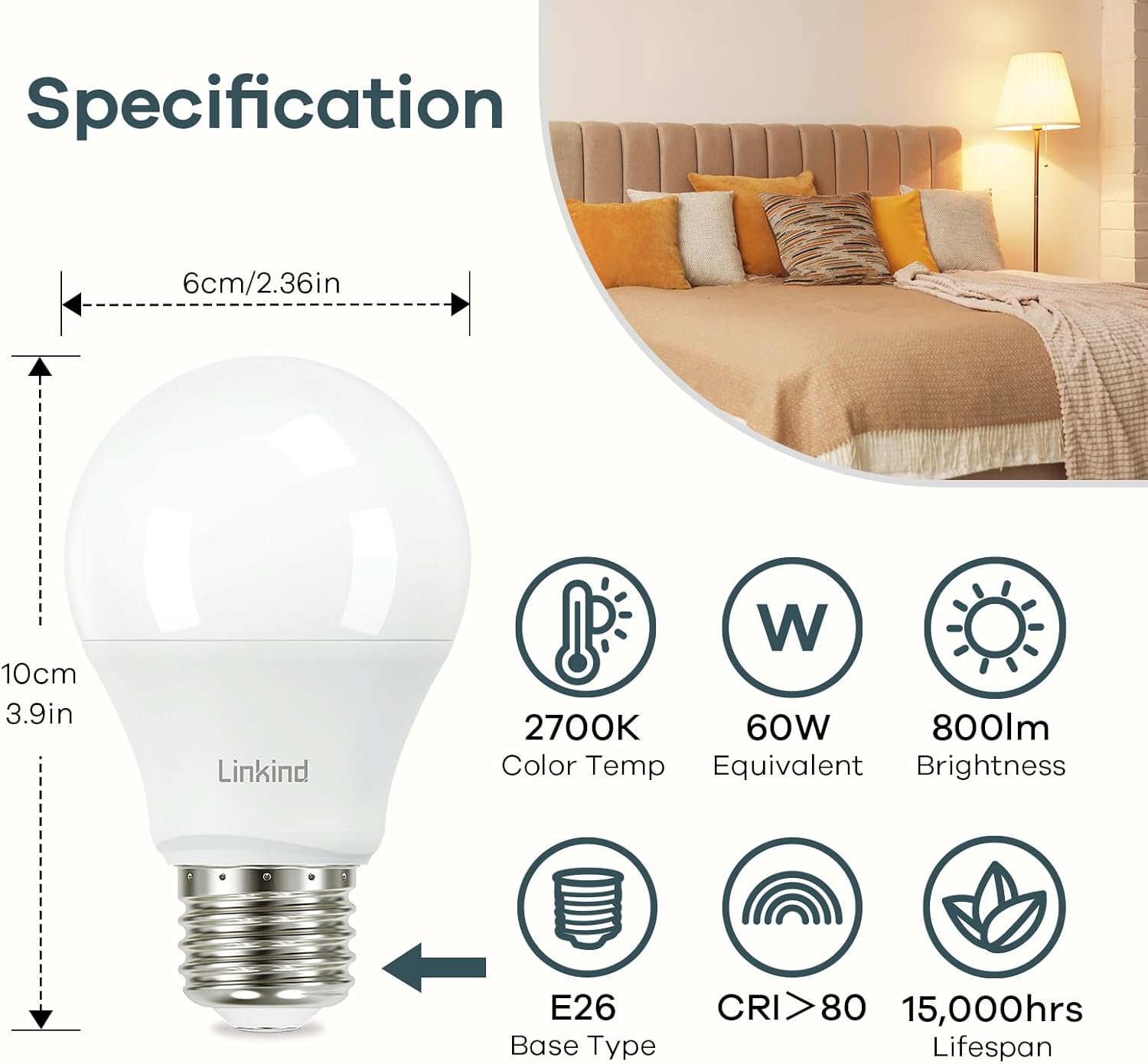 Be the first to review “Linkind A19 LED Light Bulb, 60W Equivalent, 9W 2700K Soft White, 800 Lumens Non-Dimmable, E26 Standard Base, Energy Efficient UL Listed for Bedroom Home Office, 12 Pack”