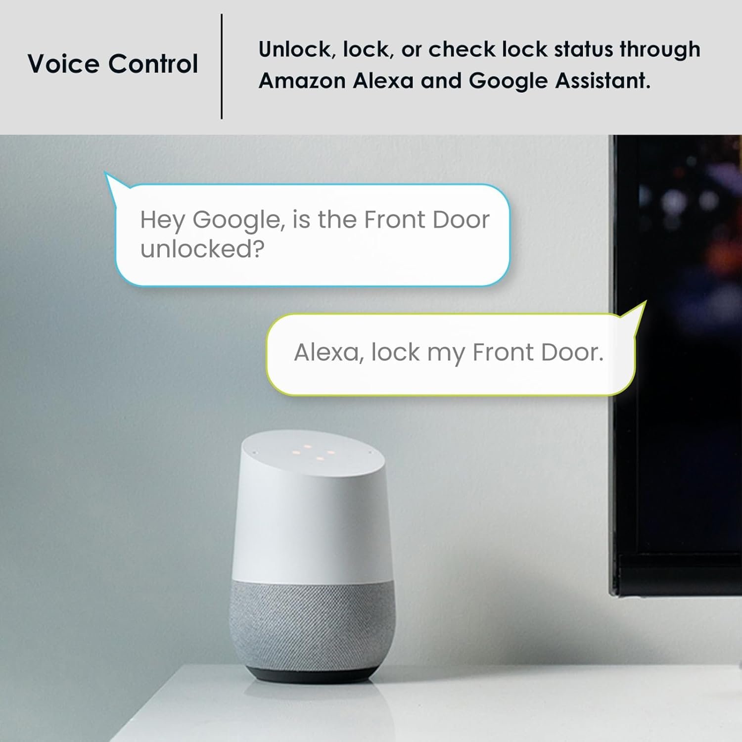Voice Control: Use Amazon Alexa or Google Assistant to control your Lockly smart lock and Wi-Fi Link with simple voice commands.