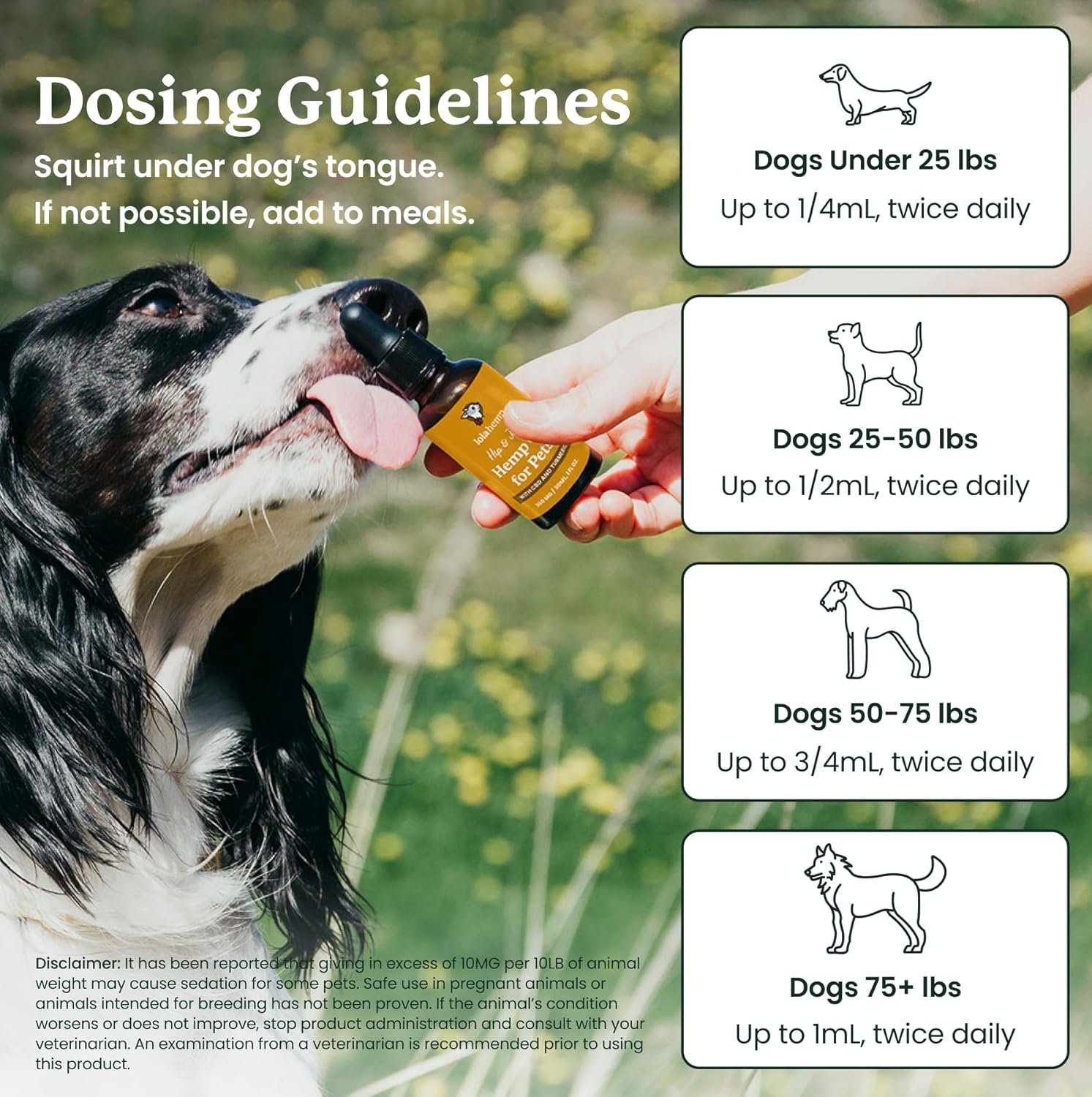 EASY DOSAGE AND MEASUREMENT – All bottles of our hip & joint oil for dogs come with mL-labeled droppers so you can know exactly how much oil your dog is getting. We also offer dosage guidelines based on weight for easy use.