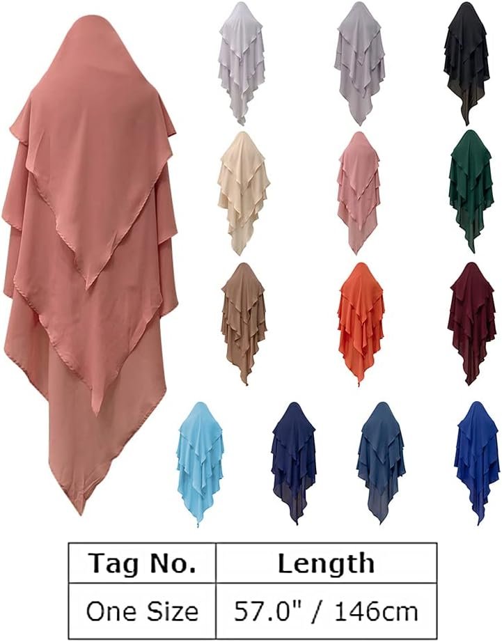 Long Khimar Hijab Scarf Wrap 3 Layer Abaya Jilbab Muslim Islam Women Niqab Jilbab Ramadan Eid Prayer Garment