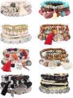8 Sets Bohemian Stretch Wood Beaded Bracelets for Women