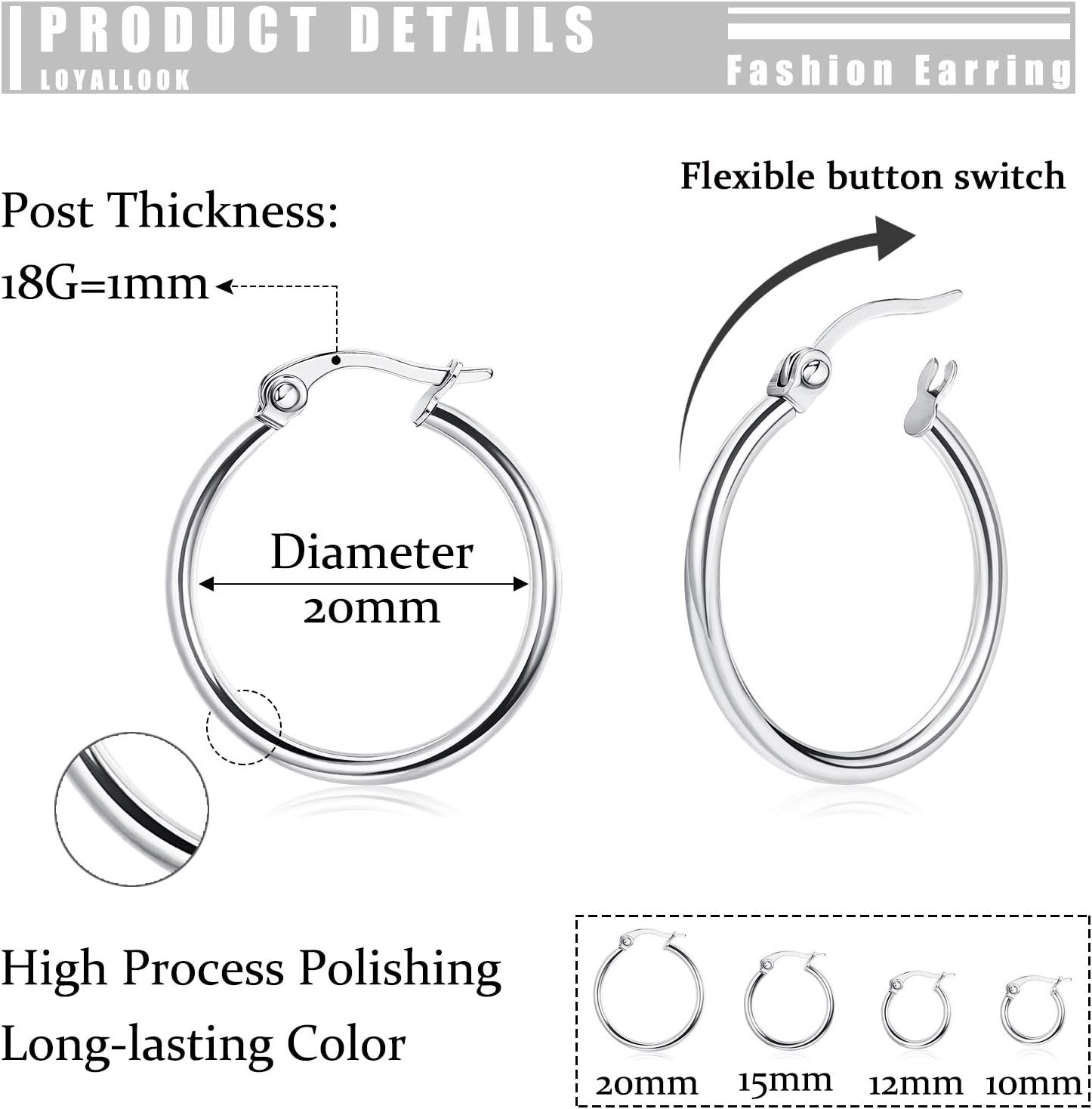 Be the first to review “LOYALLOOK Gold Hoop Earrings Set Stainless Steel Rounded Small Hoop Earrings Set for Women Cute Huggie Earrings Nickel Free 10/12/15/20MM”