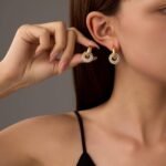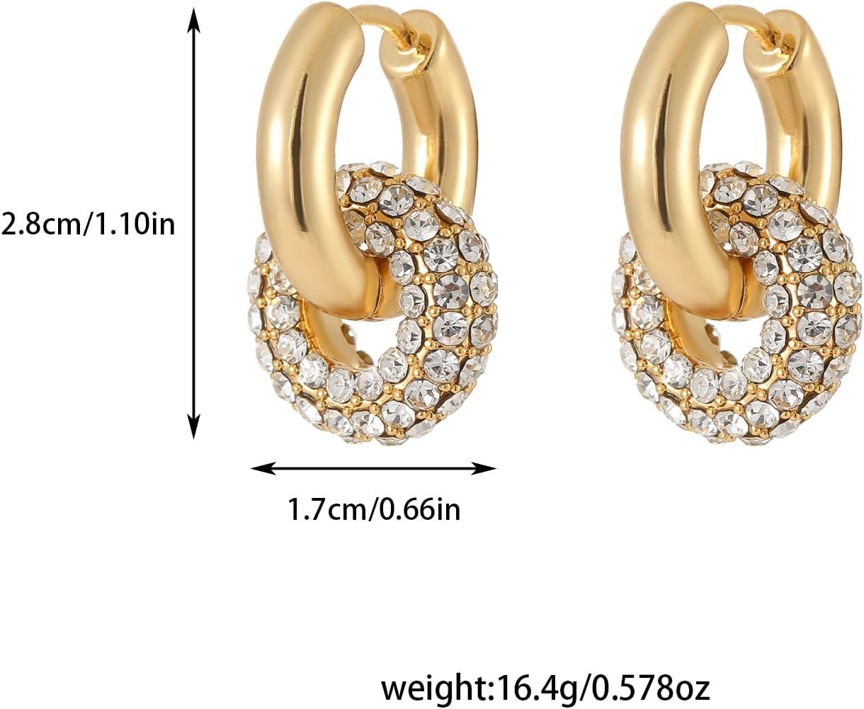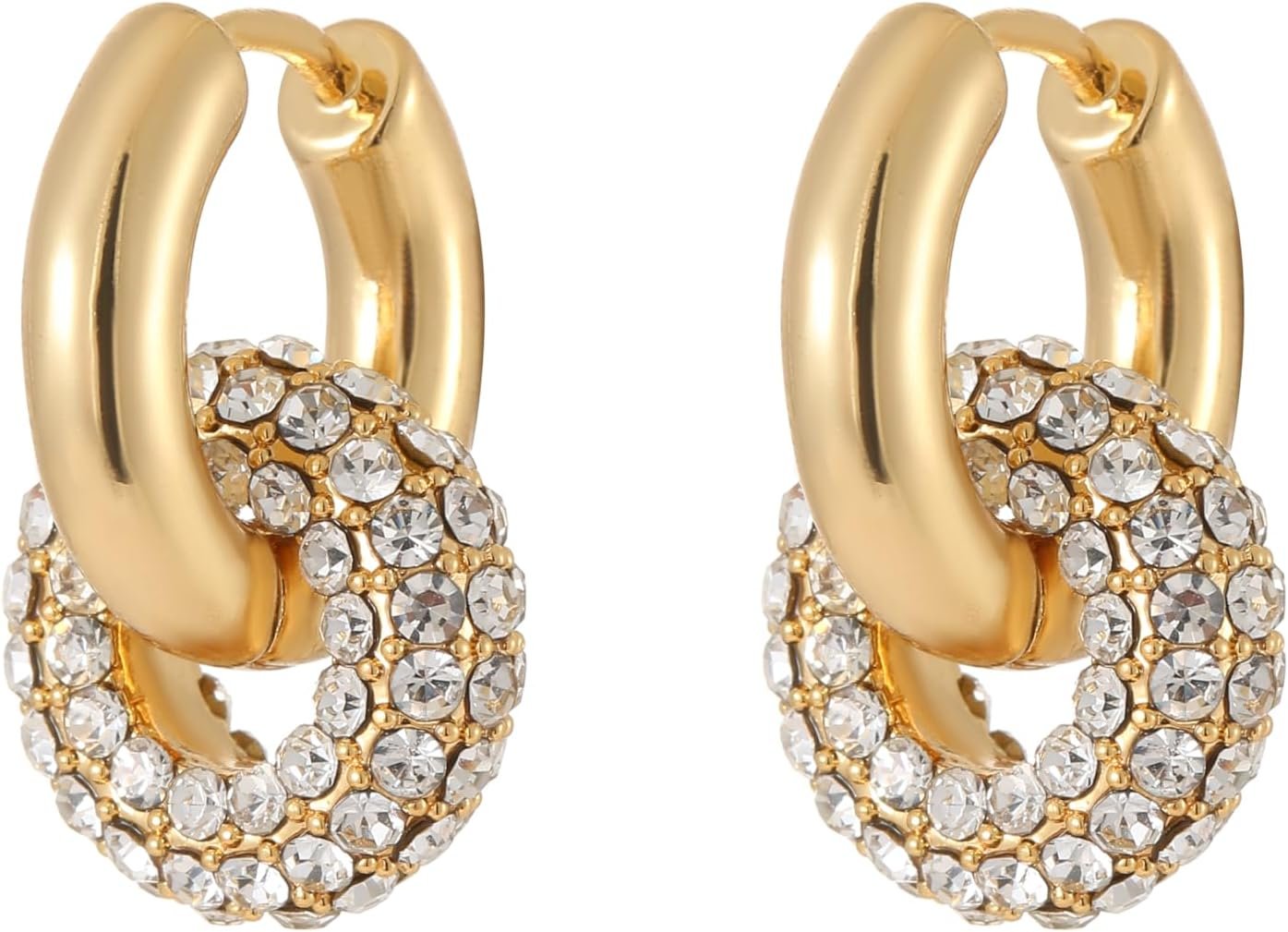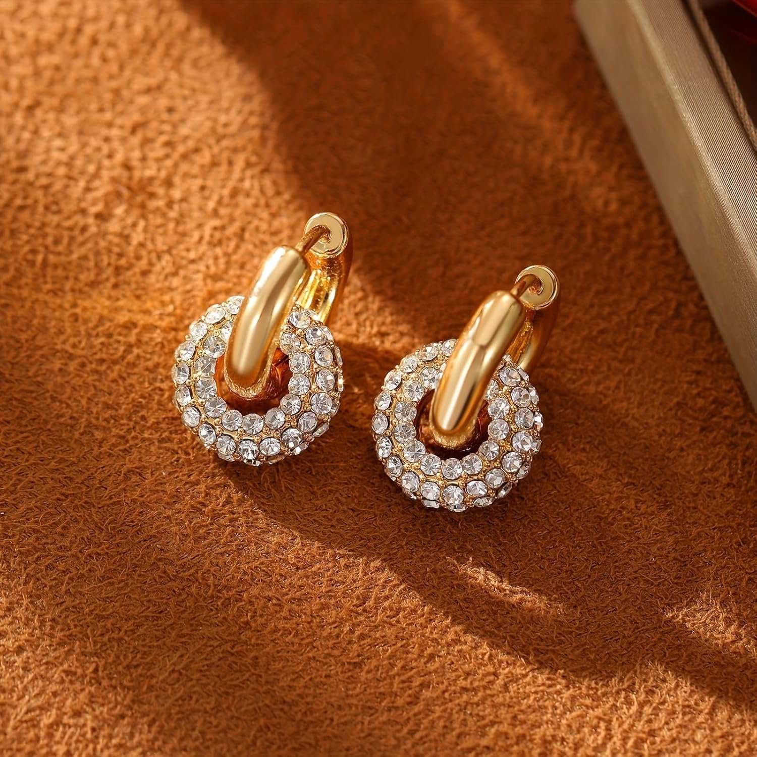 Luxurious Gold Hoop Earrings with Crystal Pave Circle Charm – Elegant Jewelry for Special Occasions