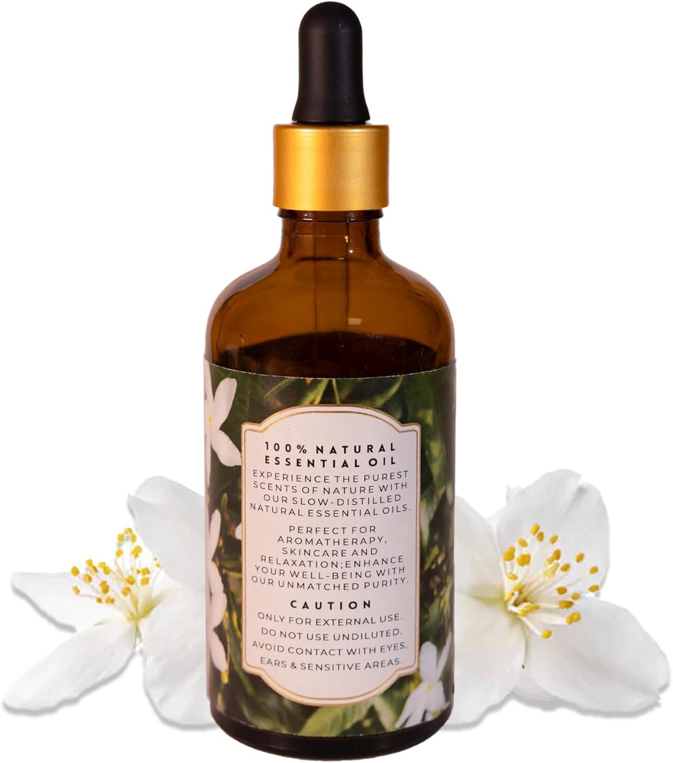Luxurious Packaging: Encased in an elegant 3.38 fl oz (100 ml) amber glass bottle, our Jasmine Essential Oil ensures longevity and purity. The amber glass protects the oil from light degradation, while the sophisticated design adds a touch of elegance to your space. The precision glass dropper allows for easy and accurate application, making it both functional and stylish.