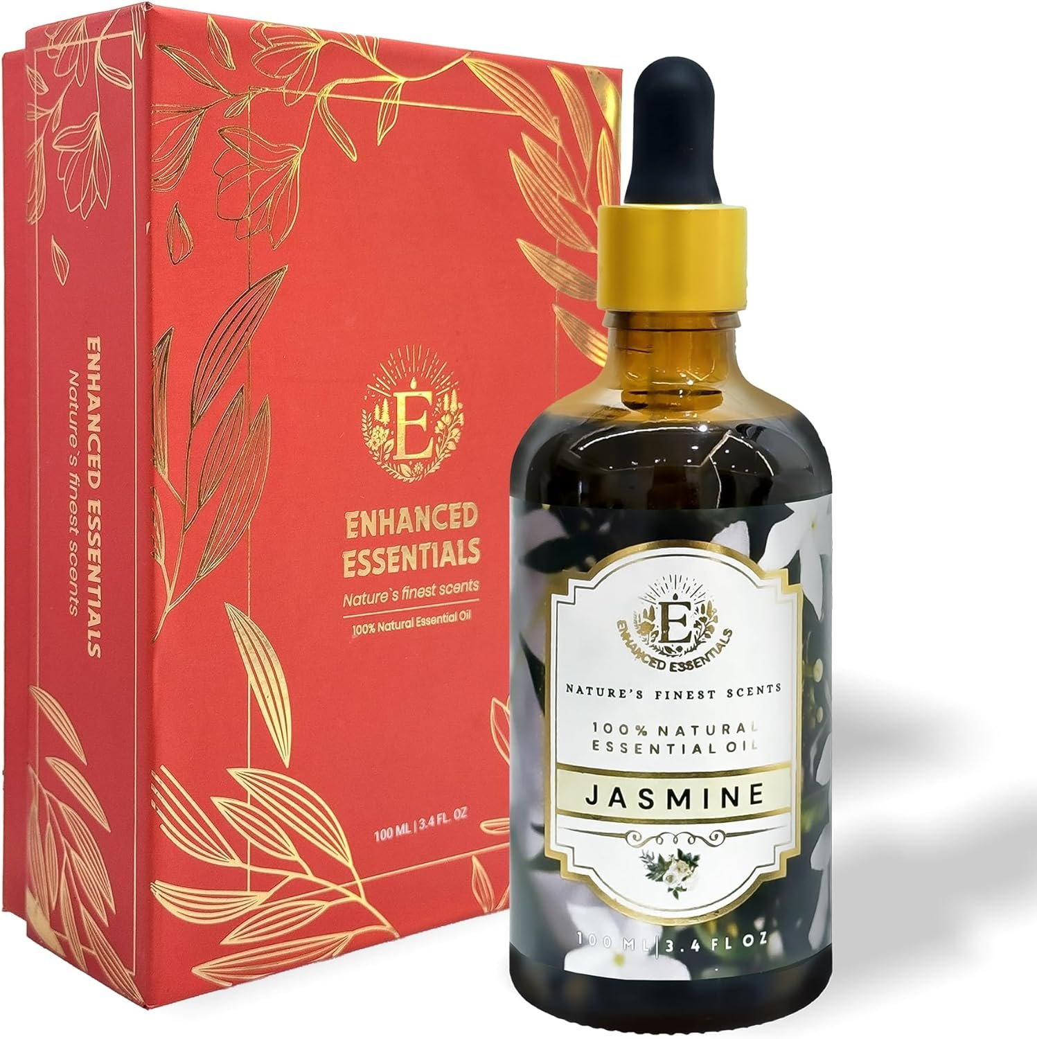 Luxurious Jasmine Essential Oil by Enhanced Essentials| Slow Distilled & Exotic| for Home,Diffusers,Skin & Hair Care,Aromatherapy,Bath,Perfume,Soap & Candle Making|with Glass Dropper|100 ml