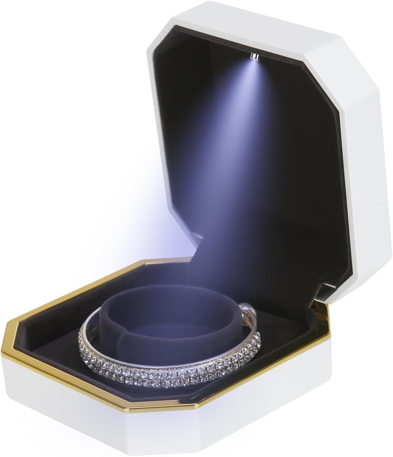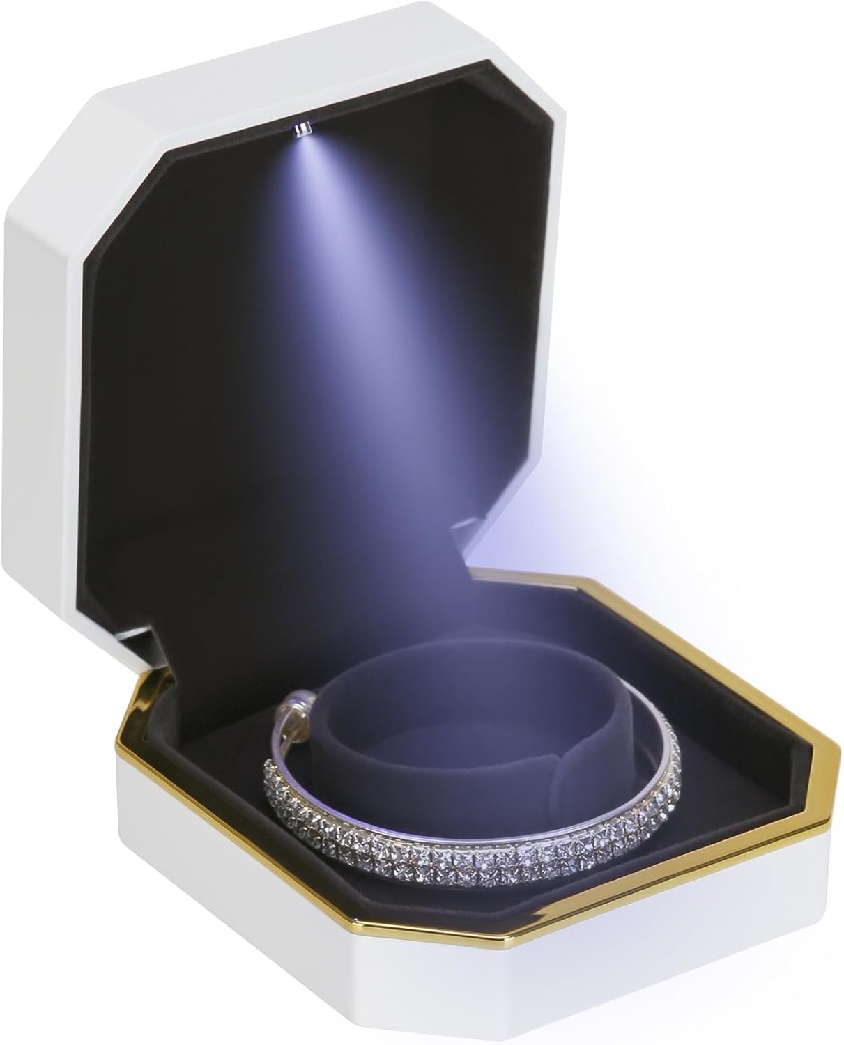 Luxury LED Jewelry Bracelet Gift Box with LED Light, Velvet Small Jewelry Box Storage Case Organizer Holder for Wedding, Engagement, Proposal, Birthday and Anniversary (White)