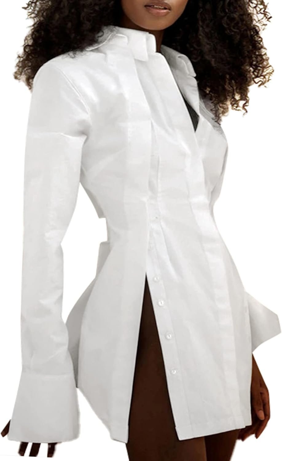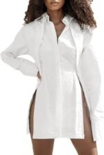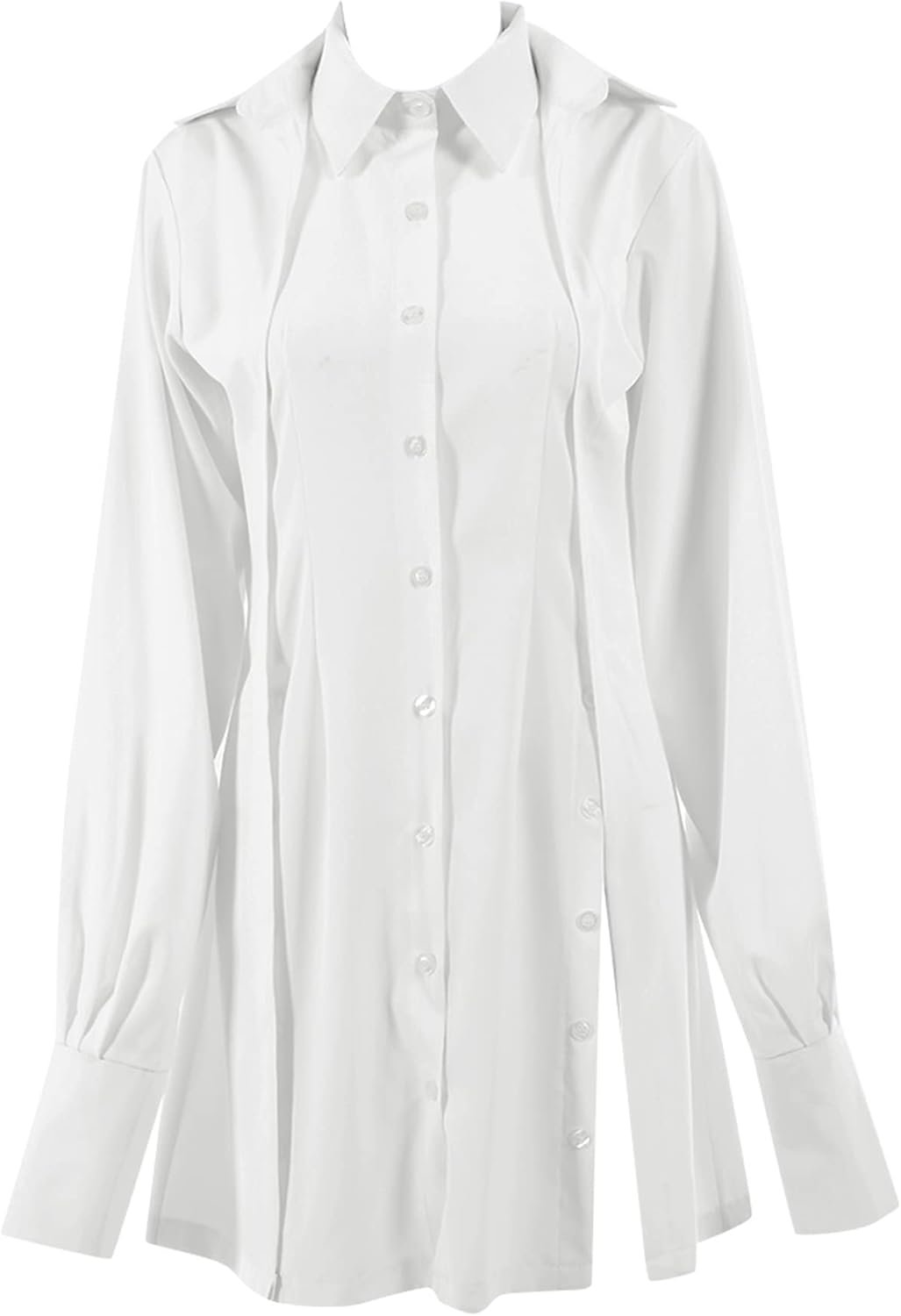 LYANER Women’s Collar V Neck Blouse Long Sleeve Button Down Split Hem Long Shirt Top