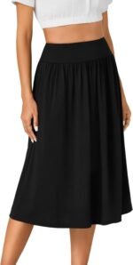 LYANER Women’s Elastic High Waist Knee Length A-line Hem Basic Casual Midi Skirt with Pockets