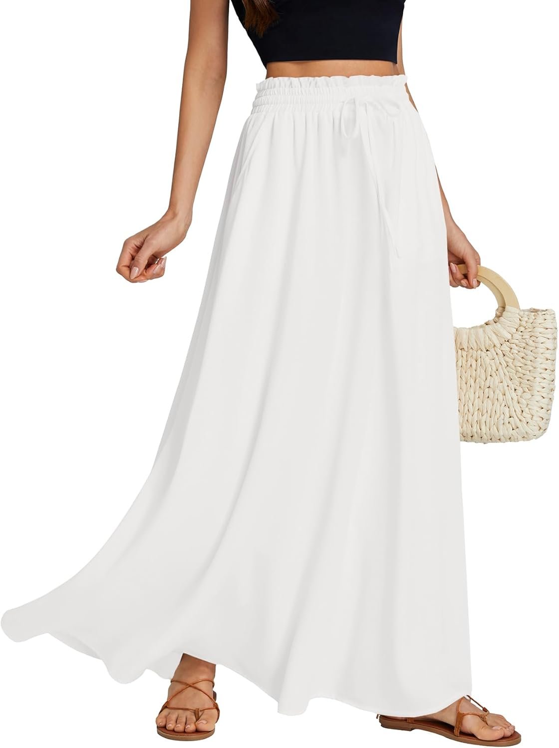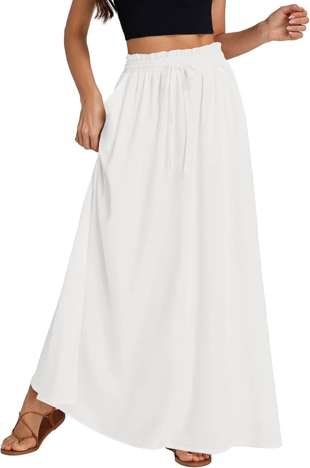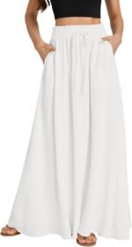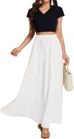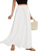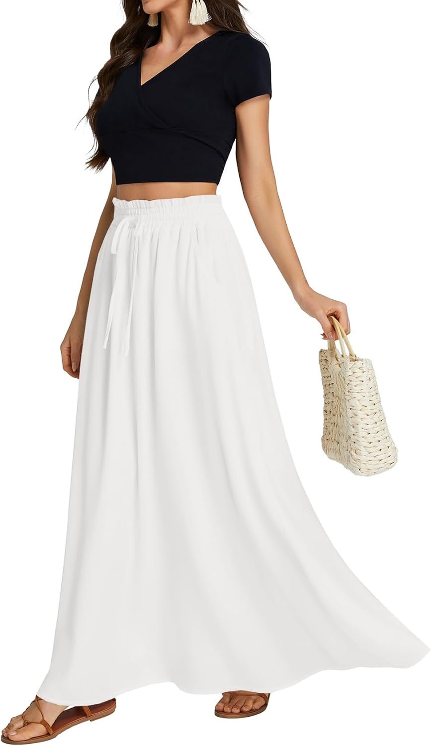 LYANER Women’s Shirred Smocked Frill Drawstring Pleated High Waist Solid Maxi Skirt