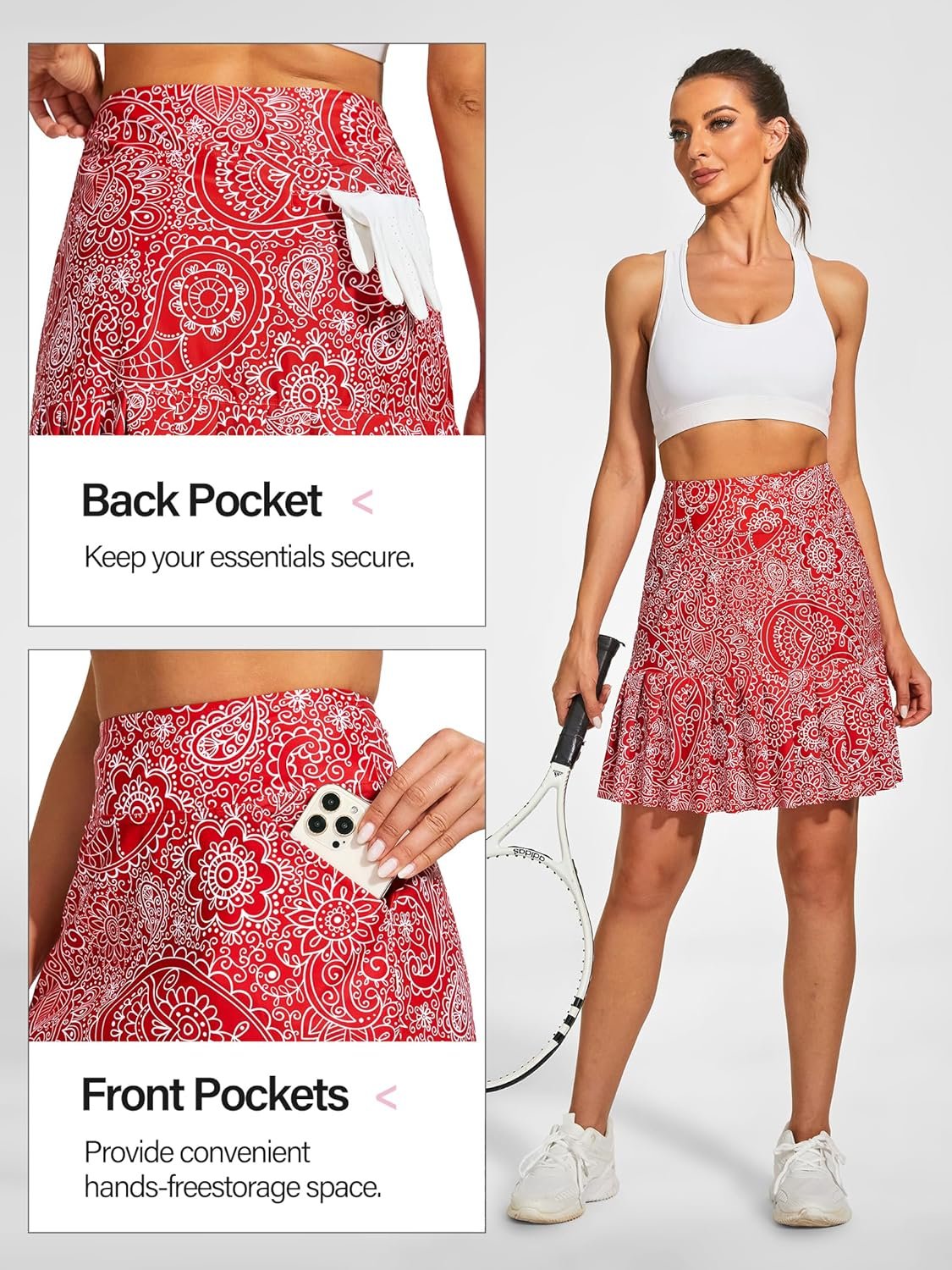 Popular among people, 19″ skort offers more coverage and modest look, perfect length for golf, tennis, daily wear