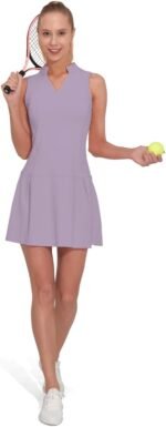 Customers love the tennis dress’s style, particularly its collar and pattern, and find it comfortable with nice fabric. The dress receives positive feedback for its quality, lightweight material, breathability, and wicking properties, with one customer noting it stays cool on hot days. The fit and pocket size receive mixed reviews – while some say it fits true to size, others find it runs small, and though the shorts have pockets on both sides, some mention receiving the dress without them.