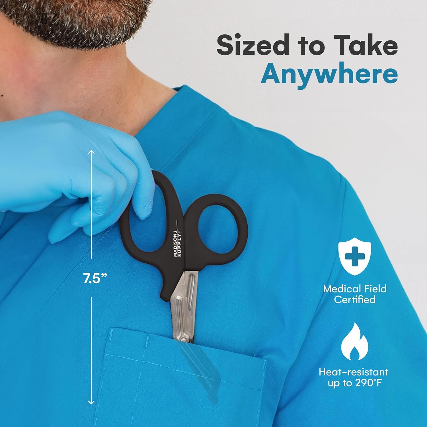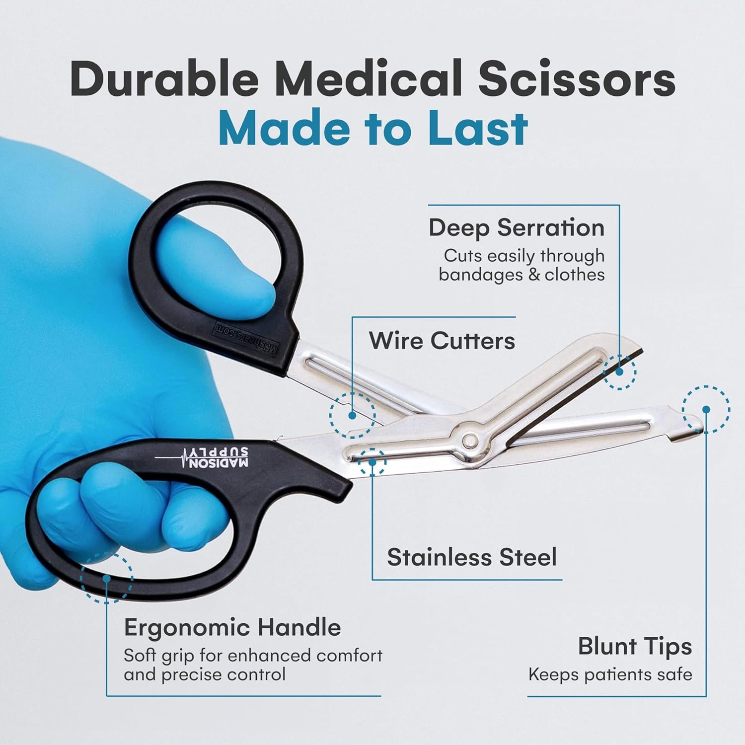 Madison Supply Trauma Shears are professional grade. These premium designed bandage and medical scissors are for doctors, nurses, nursing students, paramedics, paramedic training, EMTs, EMS professionals and first aid kits.