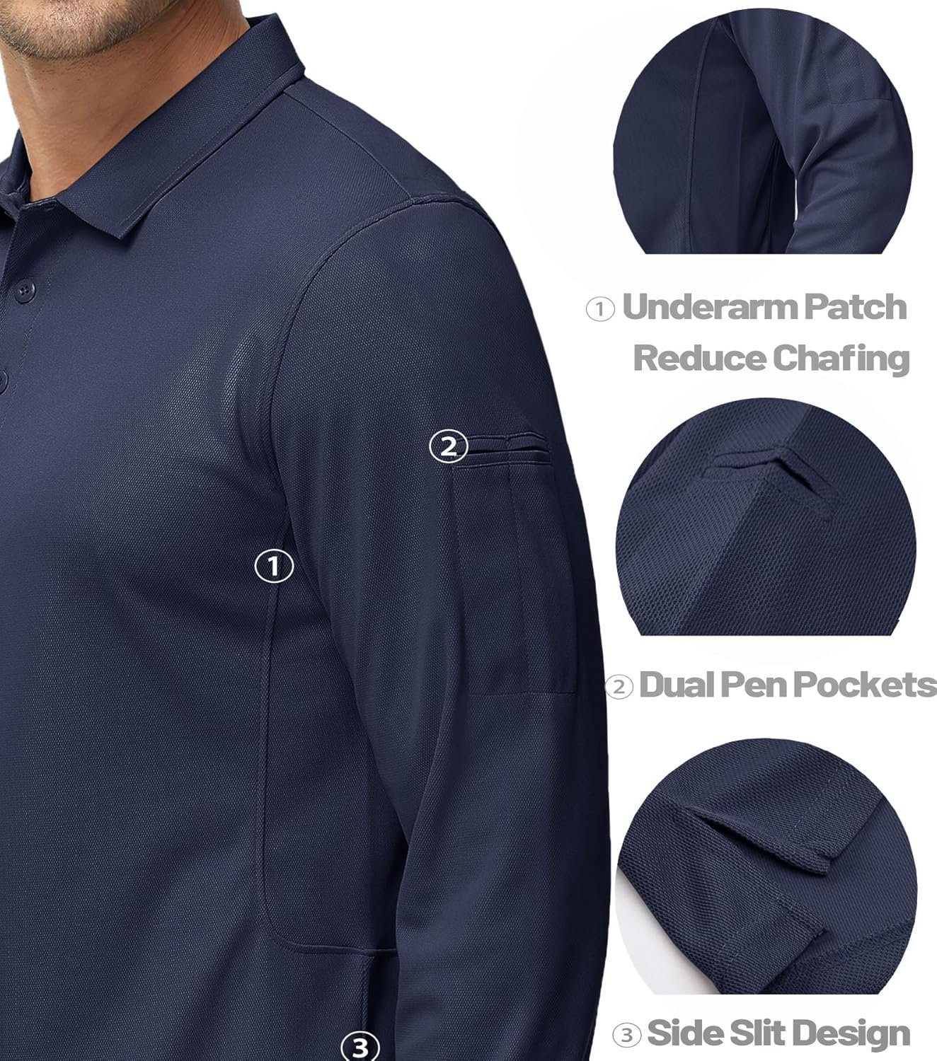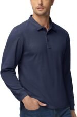 MAGCOMSEN Men’s Polo Shirts 3 Button Quick Dry Performance Long Sleeve Tactical Shirts Pique Jersey Golf Shirt