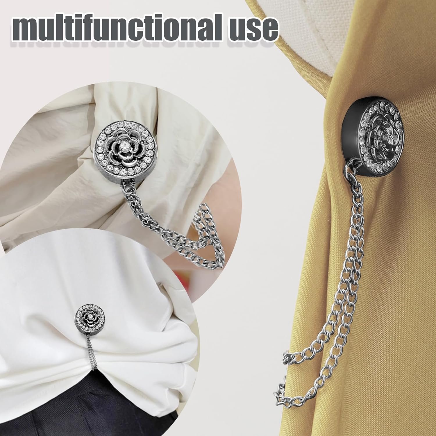 Practicality Meets Aesthetic Appeal: More than just a practical tool for securing clothing, our chain-linked magnetic adjuster is also a stunning accessory. With its chain design, it effortlessly adjusts the length of your pant legs or sleeves, ensuring a perfect fit. It serves as a stylish companion in your wardrobe, ready to add a spark to your look whenever needed