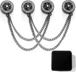 Magnetic Clips with Chain Hijab Magnets for Pant Hem Leg & Sleeve Adjuster Hijab Scarf for Women for Clothing Accessories with Rhinestone Embellishments (2, Black-Flower)