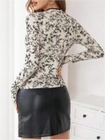 MakeMeChic Women’s Floral Print Ribbed Knit Cheongsam Top Mock Neck Long Sleeve Tee Shirts