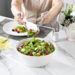【Durable & Practical Bowls】- Built to withstand daily use, the large salad serving bowls are oven, microwave and dishwasher safe; Glossy ceramic finish makes cleaning easy and maintenance hassle-free. The classic white deep bowls provide the perfect canvas for vibrant salads, hearty soups, and colorful pastas, making every dish look visually appealing and appetizing. Also, stackable design maximizes kitchen storage space.