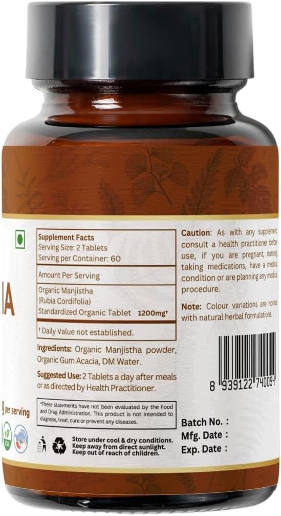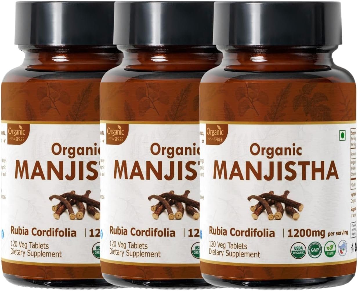 MANJISTHA 120 Tablets | Rubia Cordifolia (Manjistha) | Organic and Natural | Vegan and USDA Certified 120tab – Pack of 3
