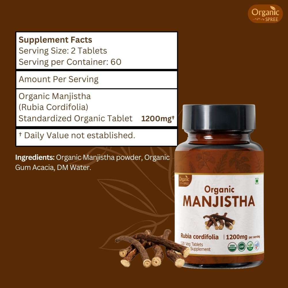 Made with Goodness: Organic Spree Manjistha Tablets are USDA Organic Certified, vegan and vegetarian-friendly, and contain no artificial colors, flavors, or preservatives. Experience the benefits of Organic Haritaki in every tablet.*